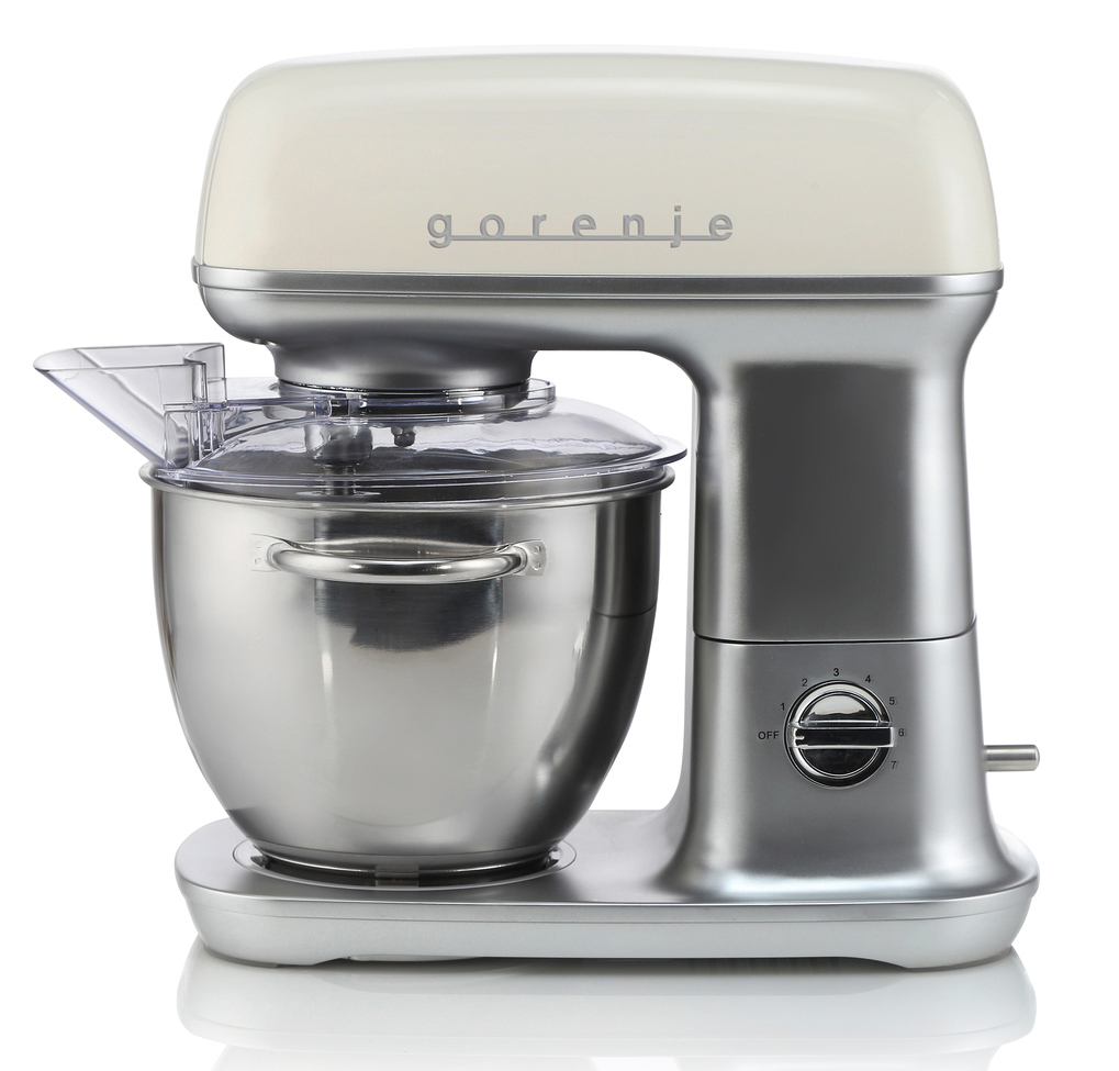 Die Gorenje Küchenmaschine Retro MMC1000 ist mit einem kraftvollen 1.000 Watt Motor und sieben Leistungsstufen ausgestattet.