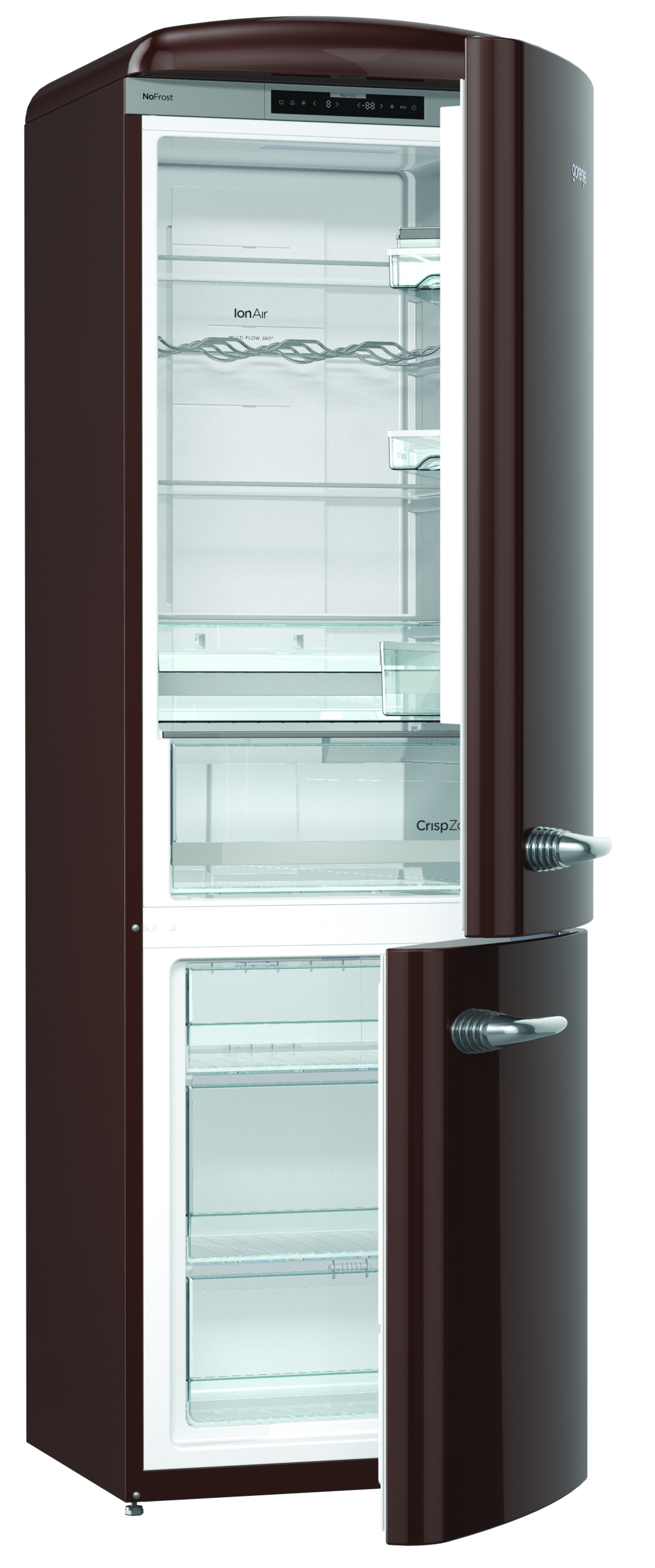 Die Gorenje Kühl-Gefrierkombination Retro Collection ONRK193 wird in Champagne, Black, Burgundy, Royal Coffee, Dark Chocolate, Silver und Fire Red erhältlich sein. In dieser Modellausführung wird die mit Negativ-Ionen angereicherte Luft mittels innovativem Belüftungssystem DynamicCooling gleichmäßig und schnell durch einen Innenventilator verteilt, damit sich keine Kondensate im Innenraum und an den Ablagen niederschlagen können. Die Gorenje Kühl-Gefrierkombination Retro Collection ONRK193 ist mit dem innovativen AdaptTech-System mit Memory-Funktion und mit einer langlebigen und sparsamen LED-Innenbeleuchtung ausgestattet.