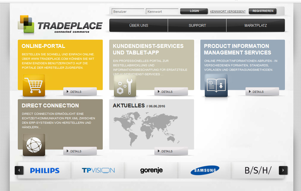 Bereits seit März 2014 ist Gorenje im deutschen Online Portal des Serviceproviders Tradeplace vertreten. Der hinsichtlich seiner Nutzerstruktur standardisierte B2B-Marktplatz für Hausgerätehersteller bietet Händlern rund um die Uhr bequemen Zugang zu allen Portalen der teilnehmenden Marken sowie deren umfassenden Serviceleistungen.