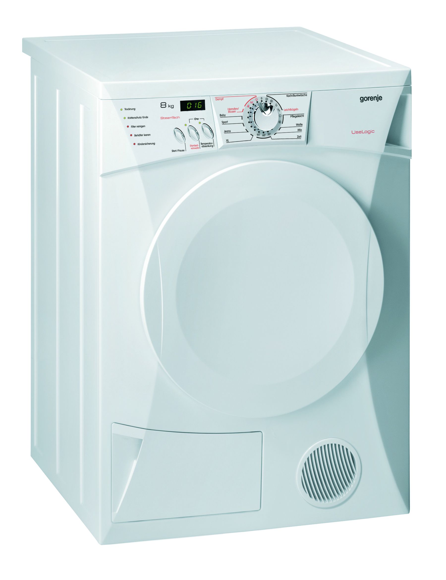 Das Modell mit innovativer Dampftechnik hat auch sonst viel zu bieten: Die geräumigen Edelstahltrommel mit Trommelinnenbeleuchtung und Trommelreversierung im XL-Programm fasst bis zu 8 kg Wäsche. Der hohe Bedienkomfort des Modells zeigt sich durch den ergonomisch geformten Programmwahlknopf, das übersichtliche LED-Display mit Startzeitvorwahl und Restzeitanzeige sowie durch die besonders große, 34 cm-Türöffnung. Neben der Auswahlmöglichkeit verschiedener Dampf- und Zeitprogramme verfügt das neue Gorenje Modell auch über ein spezielles, sanftes Trockenprogramm für sensible Babywäsche.