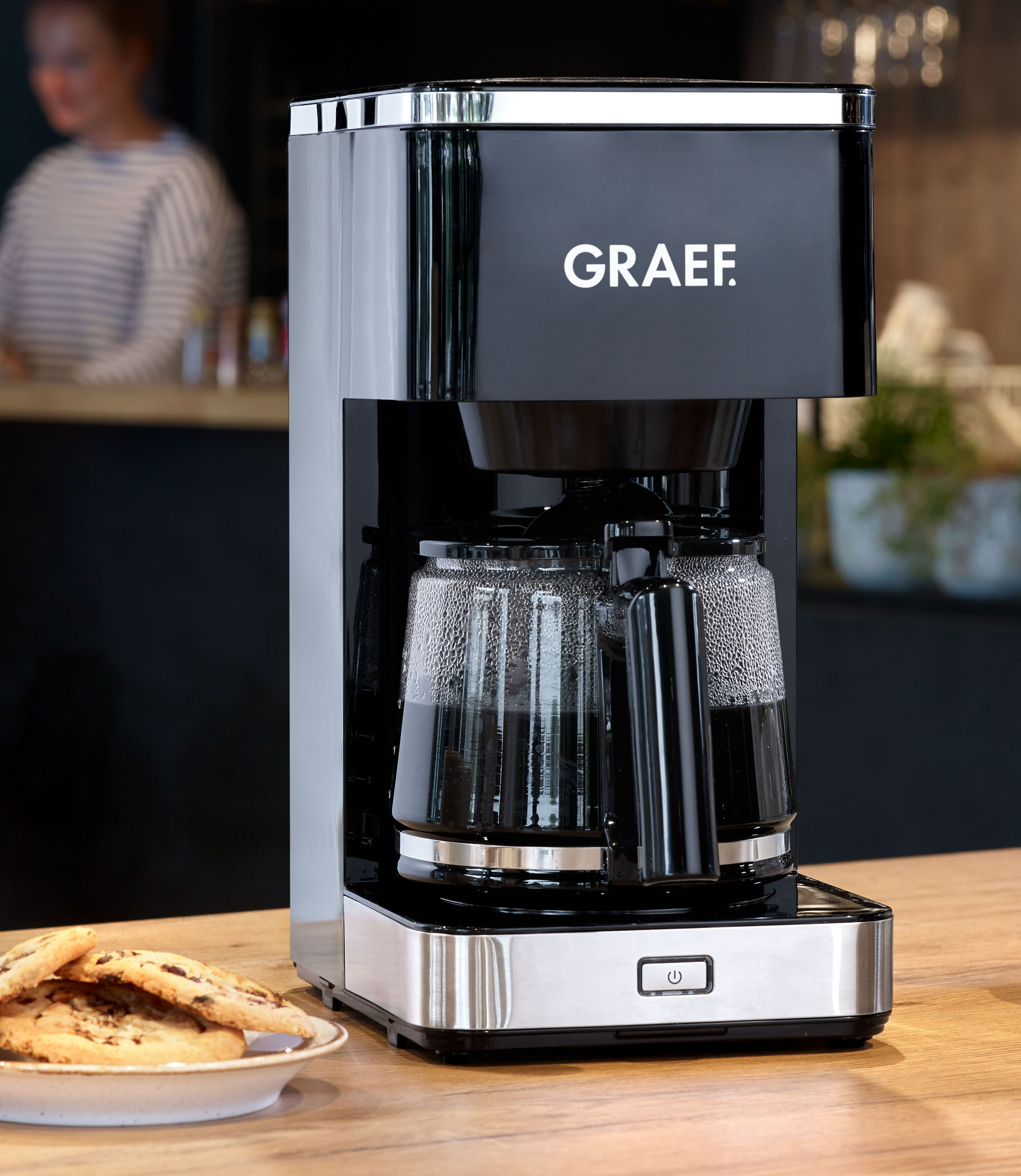 Die Graef Filterkaffeemaschine FK 400 ist ab Mitte Oktober zum Preis von 49,99 € (Glaskanne, FK 402) und für 69,99 € (Thermokanne, FK 412) erhältlich (Preise UVP).