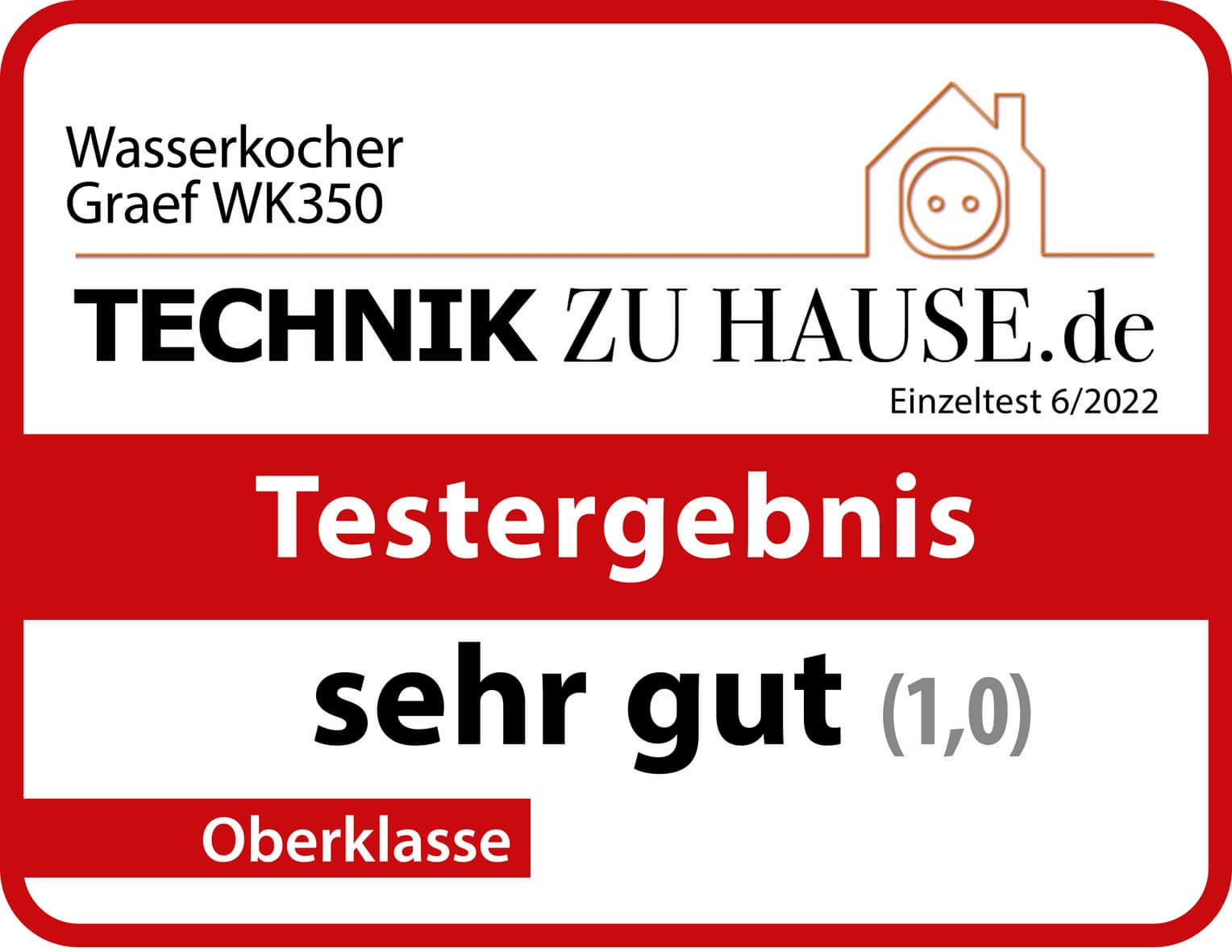 Die „Technik zu Hause“-Redaktion war vor allem von der Genauigkeit der Temperatureinstellung begeistert: „Unseren Messungen zufolge arbeitet der Graef WK350 sehr präzise und durch seine Leistung von bis zu 2.200 Watt sehr schnell.“ Die Bedienung über „das LED-Display ist übersichtlich aufgebaut und durch sanfte Berührung kinderleicht“.