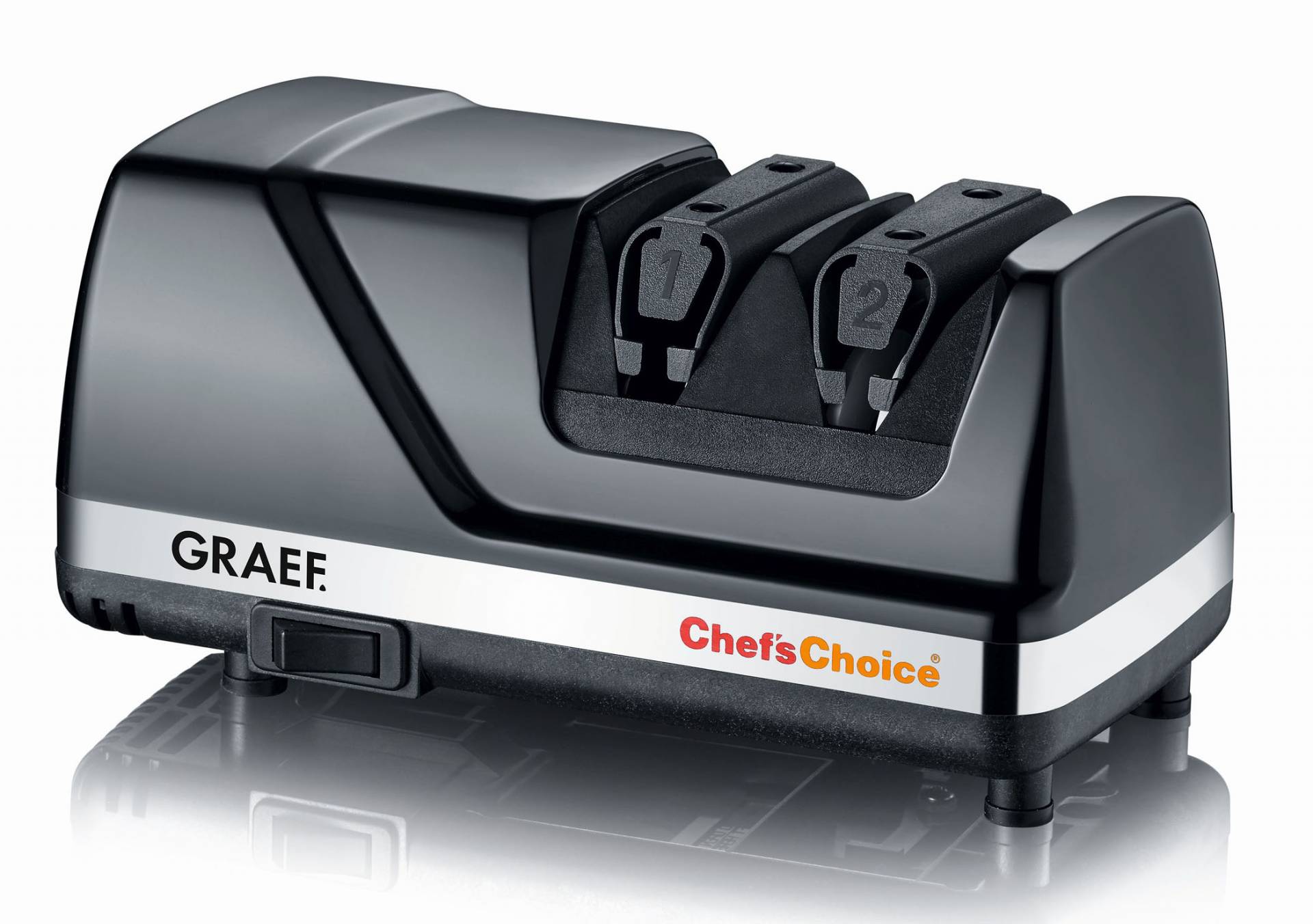 Der Graef Messerschärfer CC 115 ist ein Diamant-Messerschärfer, der europäischen Klingen den perfekten Schliff verleiht. Ob glatt oder gezahnt, ob aus Edelstahl, Karbonstahl oder Legierungen hergestellt, jedes Messer gewinnt an Schärfe und Langlebigkeit. Der Messerschärfer arbeitet in zwei Stufen und nutzt die weltweit fortgeschrittenste Schärftechnologie, so der Hersteller.