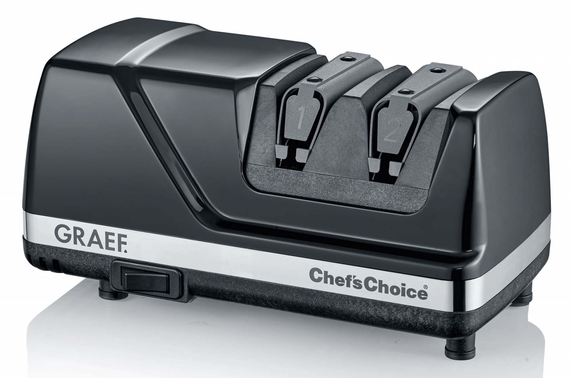 Der Graef Messerschärfer CX 110 verfügt über hochpräzise, elastische Winkelführungen für jede Messerqualität. Dadurch lässt sich die Klinge sehr viel genauer und schärfer schleifen als mit vergleichbaren Geräten.