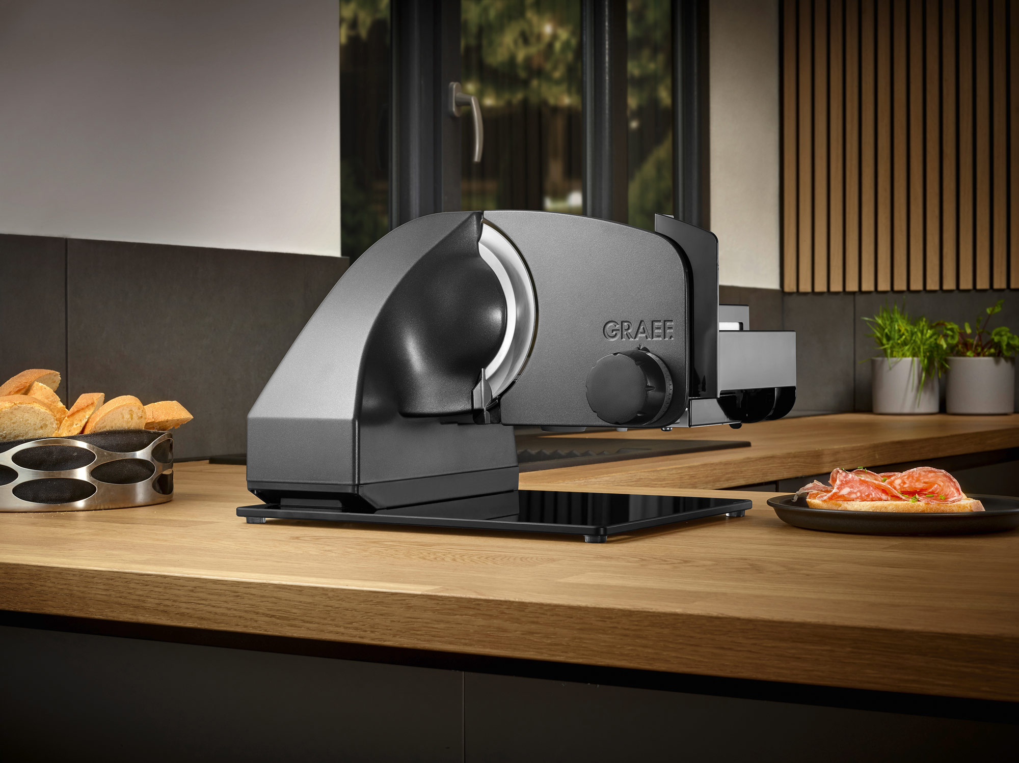 Ein besonderes Augenmerk liegt auf Nachhaltigkeit: Das Aufschneiden von Lebensmitteln am Stück verlängert deren Haltbarkeit und reduziert Verpackungsmüll. Graef verweist in diesem Zusammenhang auf eine eigene Haltbarkeitsstudie. Die Style-Serie wurde für den platzsparenden Einsatz in der Küche konzipiert und ist in Silber und Schwarz erhältlich.
