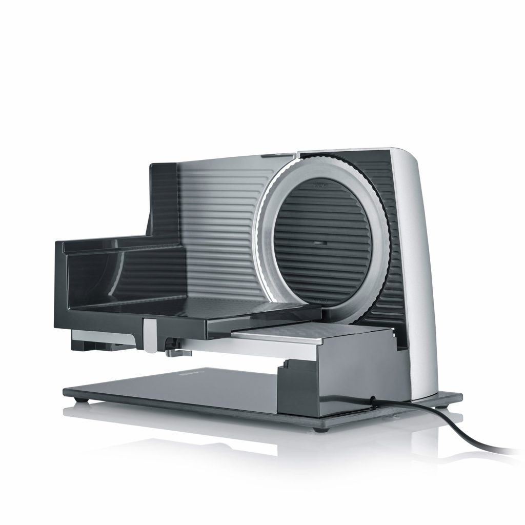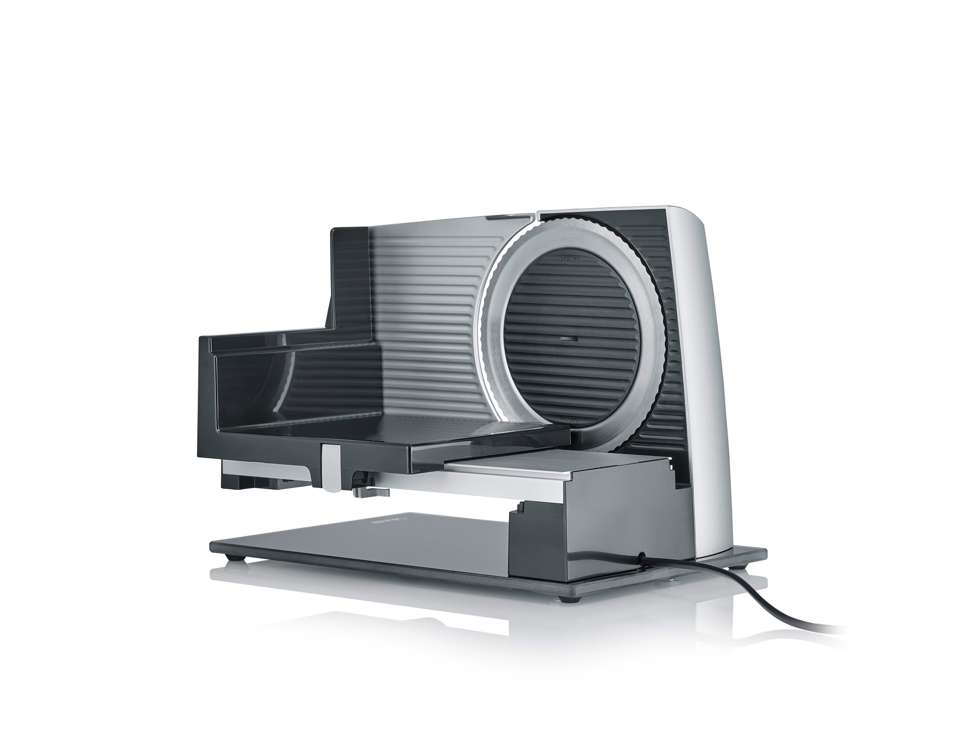 Die Geräte arbeiten mit einem Eco Power Gleichstrommotor (45 Watt Nennleistung, 170 Watt Schneideleistung) und ermöglichen durch die stufenlose Schnittstärkeneinstellung von 0 bis 20 mm konstante Ergebnisse. Die freitragende Variante erlaubt das direkte Auffangen des Schnittguts auf Tellern oder Schneidebrettern. Sicherheitselemente wie Daumenschutz mit Verriegelung und ein Restehalter sind integriert. Für einfache Reinigung sorgt ein Sicherheitsverschluss zur Messerabnahme.