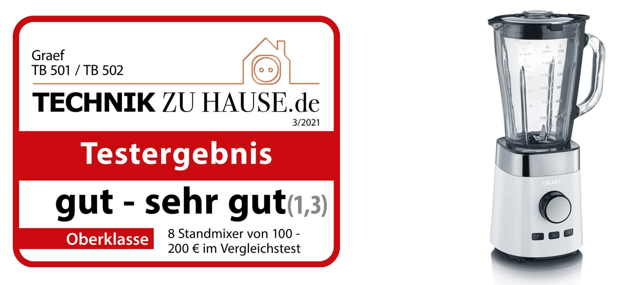 Der Standmixer TB 500 von Graef holt sich im aktuellen Vergleichstest der „Technik zu Hause“-Redaktion die Gesamtnote „gut“ bis „sehr gut“ (1,3).