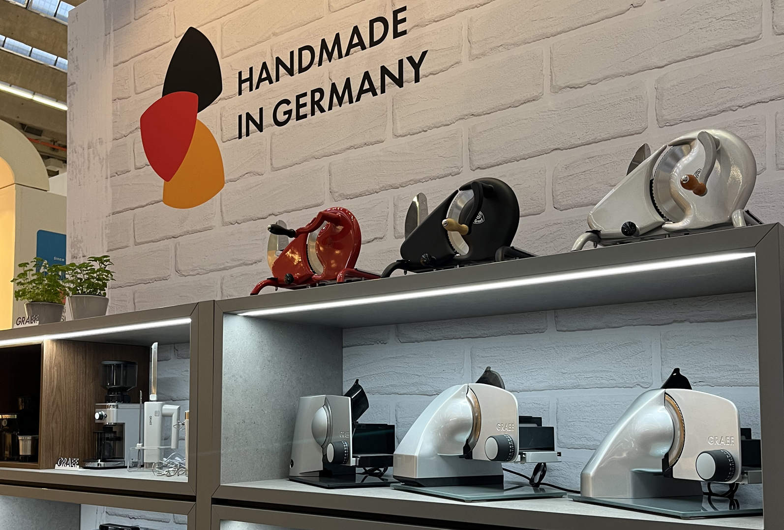 Selbstverständlich stellte Graef auch sein Key-Produktsortiment, die Allesschneider, in unterschiedlichsten Varianten aus. Mit einer Konzept- und Designstudie zeigte das Unternehmen, dass es als Spezialist auf diesem Gebiet passende Lösungen für jedes Anwendungsgebiet schaffen kann.