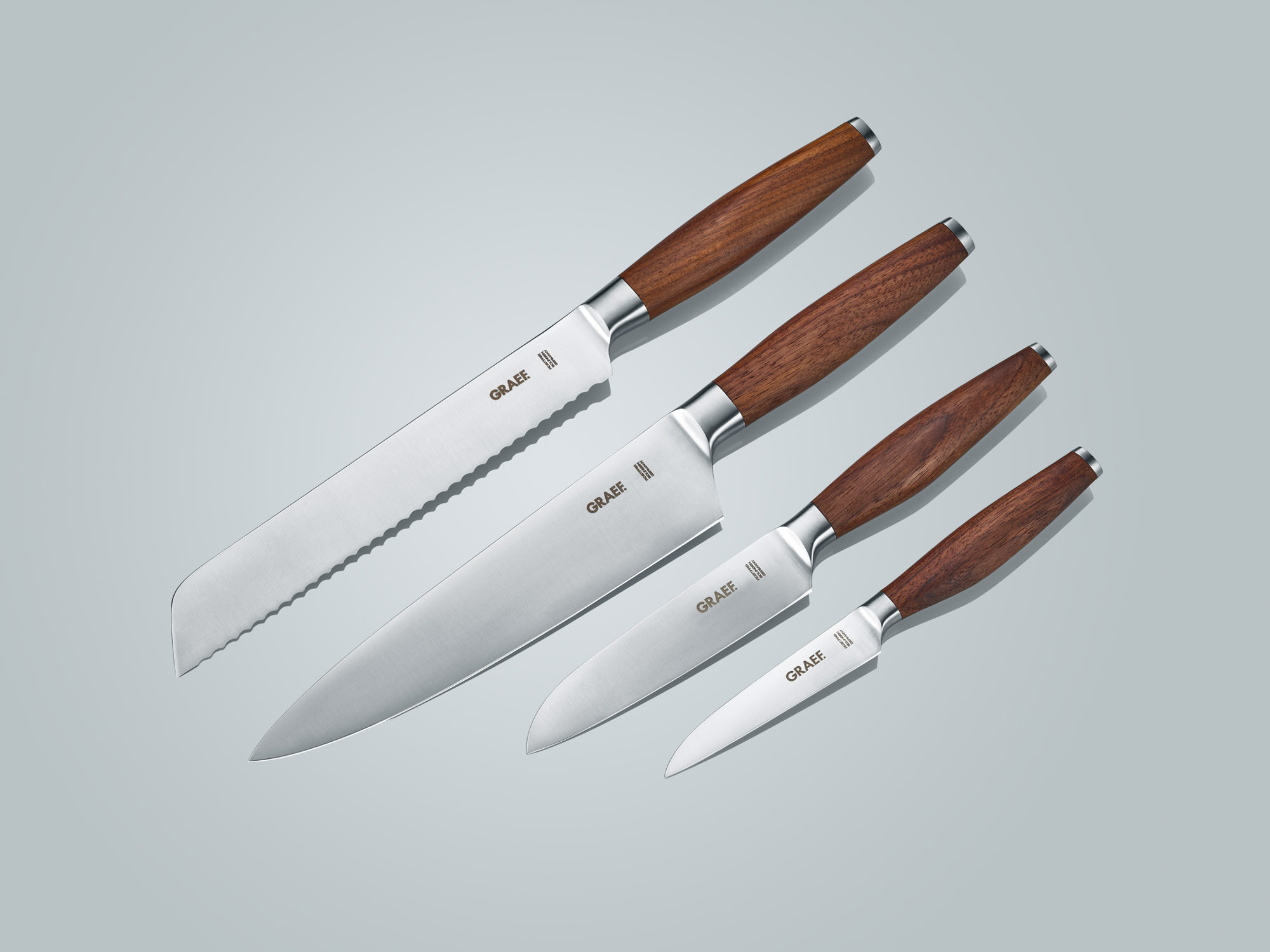 Damit die Messerschublade nicht leer bleiben muss, gibt es eine weitere Neuheit, die erstmals auf der Ambiente vorgestellt wurde: vier Küchenmesser von Graef für jedes Schnittgut. Gemüse-, Santoku-, Koch- und Brotmesser sind alle Solinger Originale – von Hand geschliffen. Dank ausgezeichneter Klingenqualität sorgen sie für höchste Schärfe und Korrosionsbeständigkeit in jeder Küche.