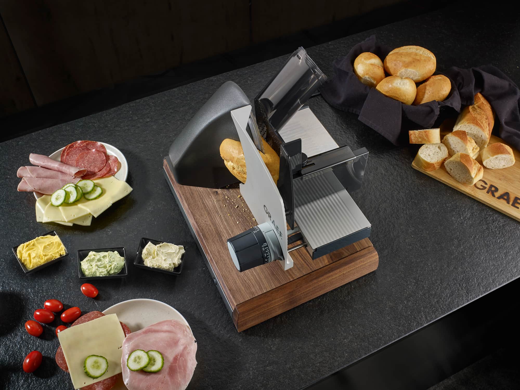 Was einst als klassische Brotmaschine Einzug in die Küchen erhielt, ist heute so viel mehr. Wurst, Käse, Obst, Gemüse – die Einsatzmöglichkeiten sind so vielseitig wie die Modelle selbst. Alle Modelle sind handgefertigt im Sauerland. „Quasi jede Innovation im Allesschneider-Markt hat den Ursprung in unserer Manufaktur“, betont Hermann Graef, Geschäftsführer der Gebr. GRAEF GmbH und Co. KG.