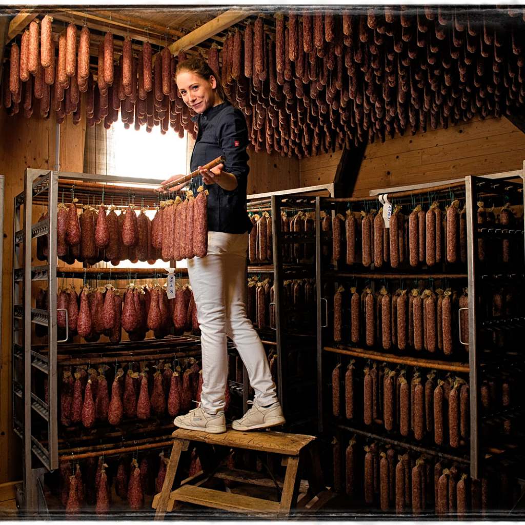 Meine Zielvorstellung ist, die ganz traditionellen und bewährten Herstellungsweisen unserer Produkte weitestgehend beizubehalten und gleichzeitig das Unternehmen sowie die Prozesse zukunftsfähig zu gestalten. Seit meiner Übernahme habe ich stark in unsere digitalen Vertriebswege investiert und auch die Organisation der Abläufe im Betrieb sowie das Produktsortiment angepasst. Aber die Ahle Wurst, die handgemachte, luftgetrocknete Rohwurst, für die wir berühmt sind, stellen wir bewusst noch immer so her wie zu Zeiten meines Großvaters.