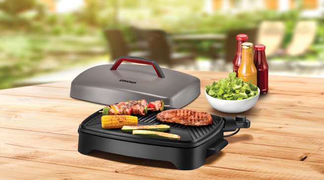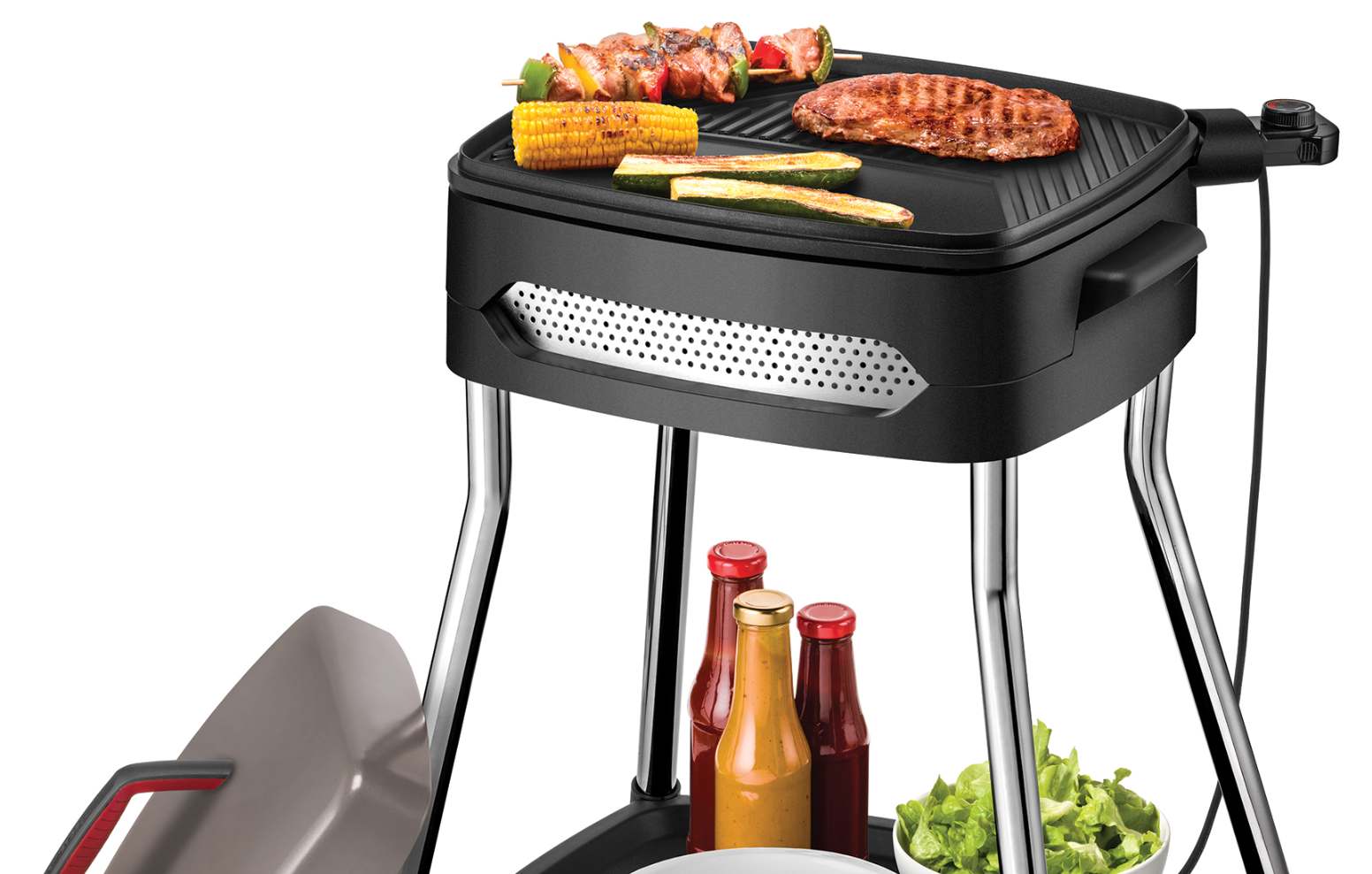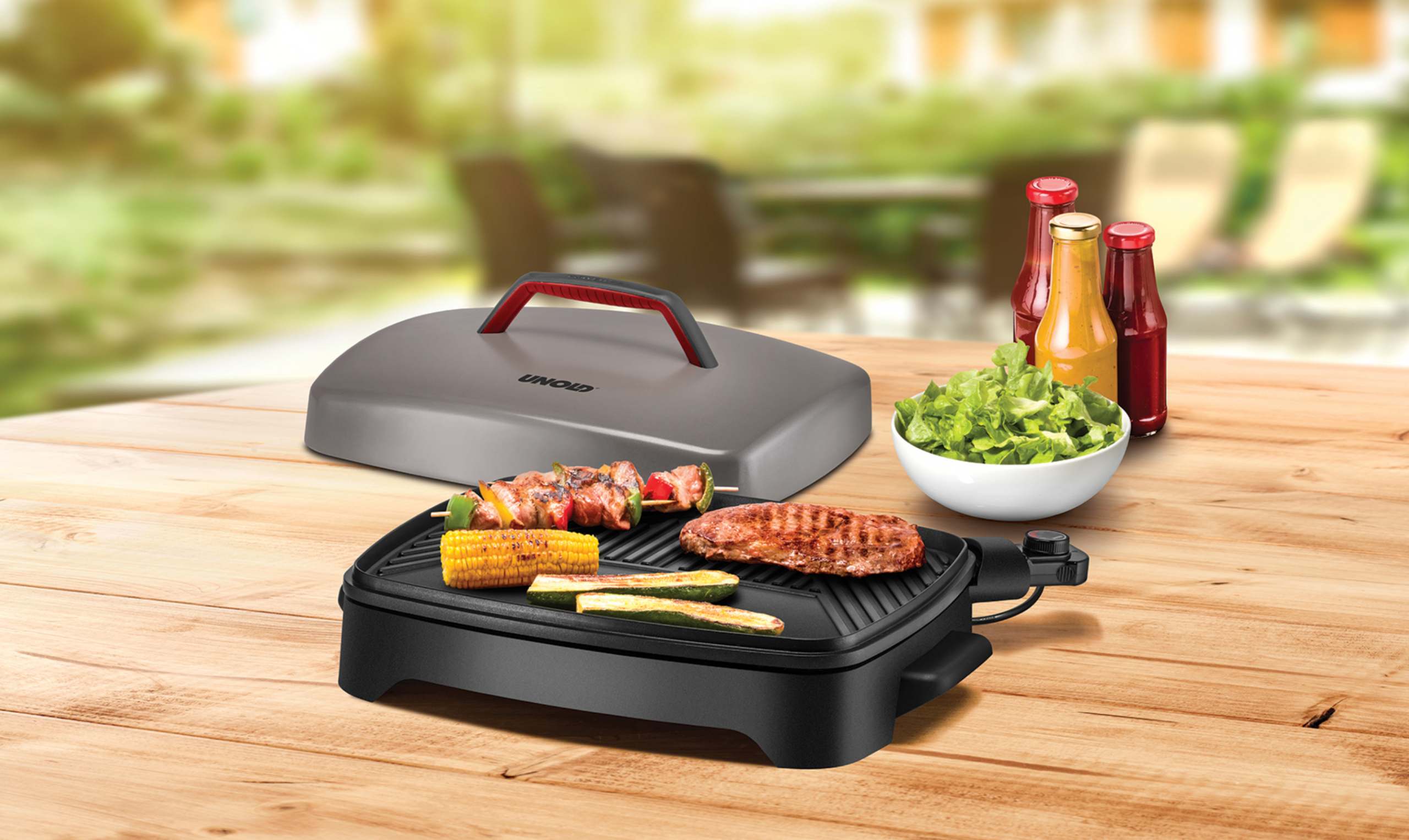 Der neue Barbeque Power Elektrogrill von Unold bietet mit seiner großen Grillfläche (35 x 40 Zentimeter) Platz für jede Menge köstliches Grillgut, um die Familie wie Gäste zu verwöhnen. Mit einem stufenlos einstellbaren Temperaturregler wird die passende Hitze für empfindliches Fischfilet, lecker marinierte Steaks oder aromatische Folienkartoffeln denkbar einfach eingestellt. Ist der Grill in seinem Element, bläst er die Backen auf und kommt als ein echtes Powerpaket mit bis zu 2000 Watt daher.