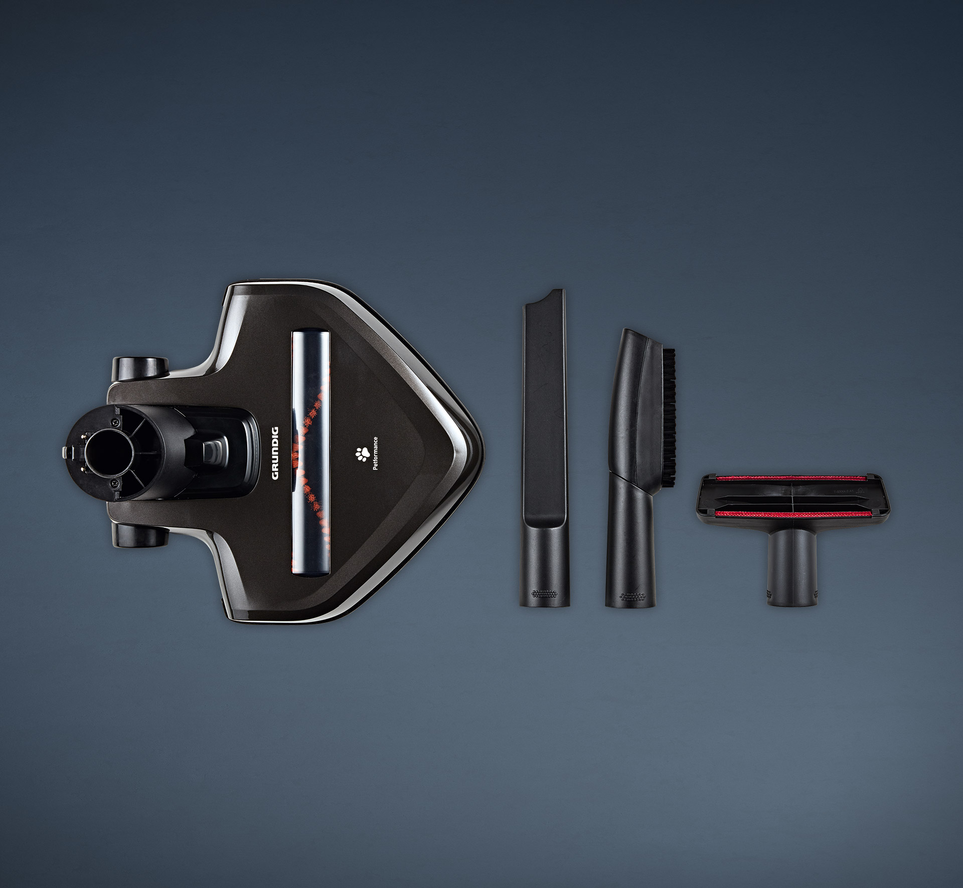- hochleistungsfähige elektrische Turbobürste für das Entfernen von hartnäckigen Verschmutzungen und Tierhaaren auf allen Bodenbelägen