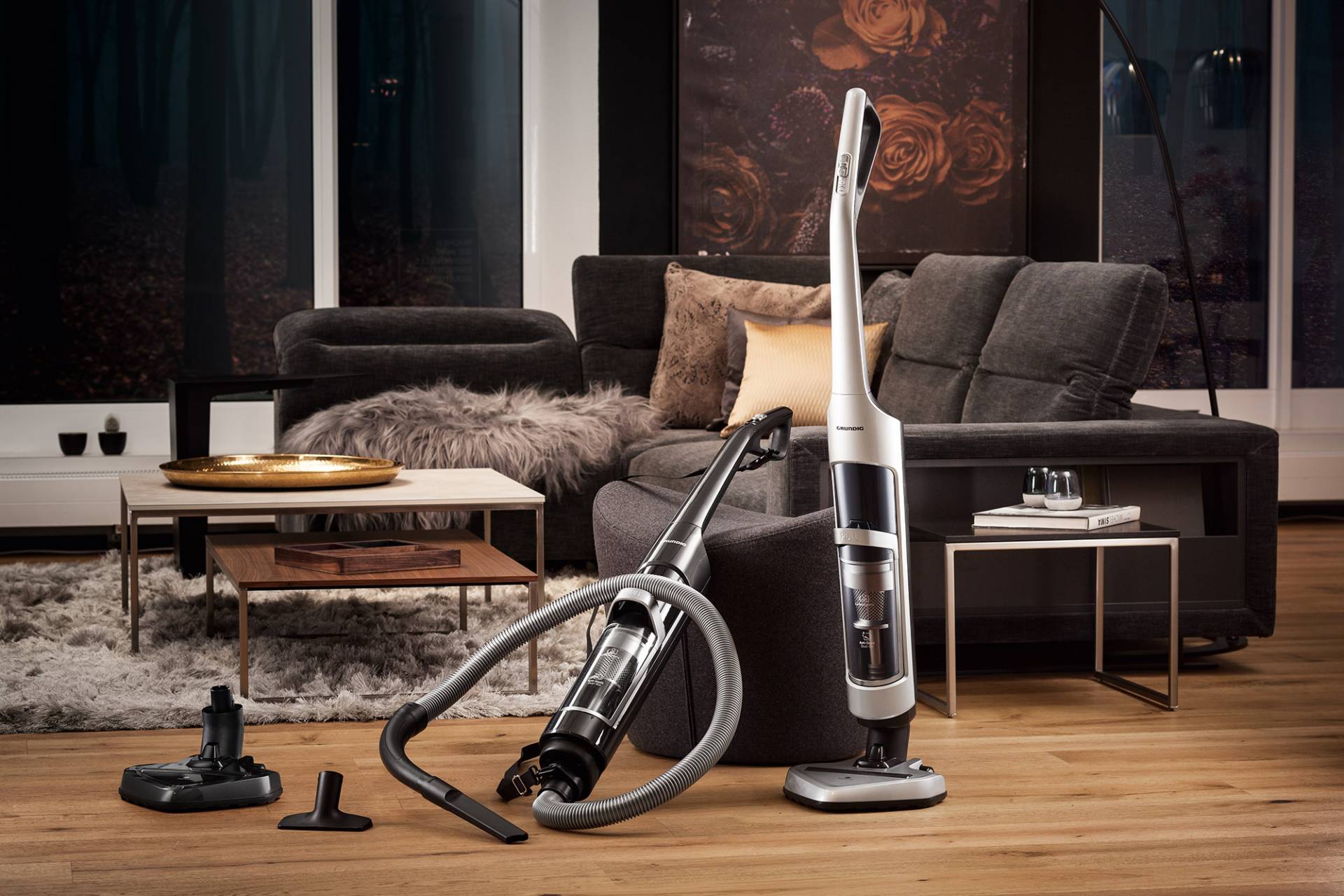 Krümel auf dem Teppich, Tierhaare oder Staub unter den Möbeln – nicht immer lässt sich der Schmutz leicht entfernen. Die beiden Akku Stielstaubsauger VCH 9731 und VCH 9732 von Grundig schaffen hier einfache Abhilfe. Dank der dreieckigen Turbobürsten sowie dem Staubsaugerkopf, der sich um 360 Grad drehen lässt, befreien sie auch die hintersten Winkel von Dreck.