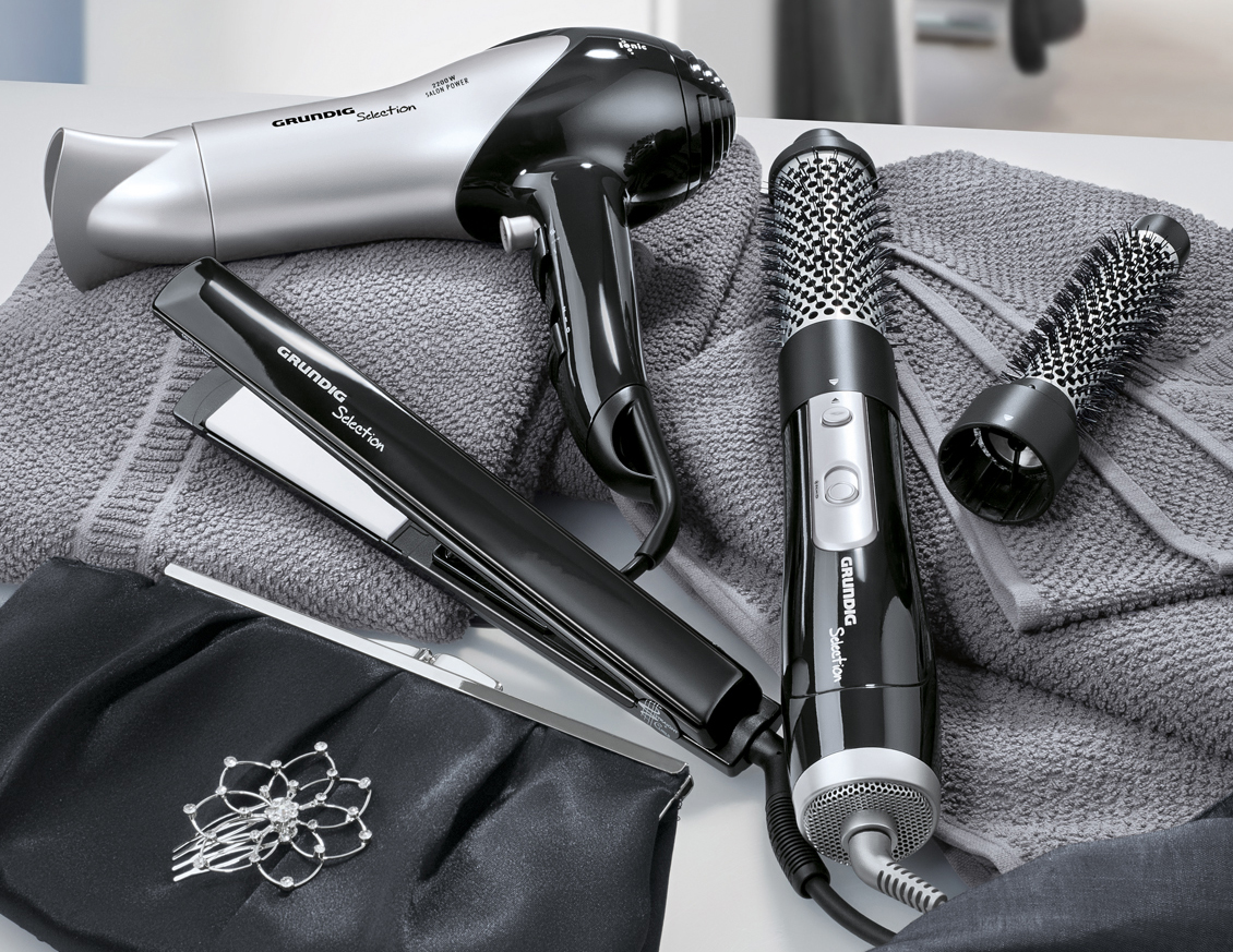 Die Kollektion Grundig Black Selection besteht aus Ionic Haartrockner HD 6080 , Solid Ceramic Hair Styler HS 5030 und dem Volumen- und Lockenstyler HS 4021. Die Modelle der Grundig Black Selection sind aufgrund ihrer Ionic-Funktion und Keramikausstattung schonend zum Haar.