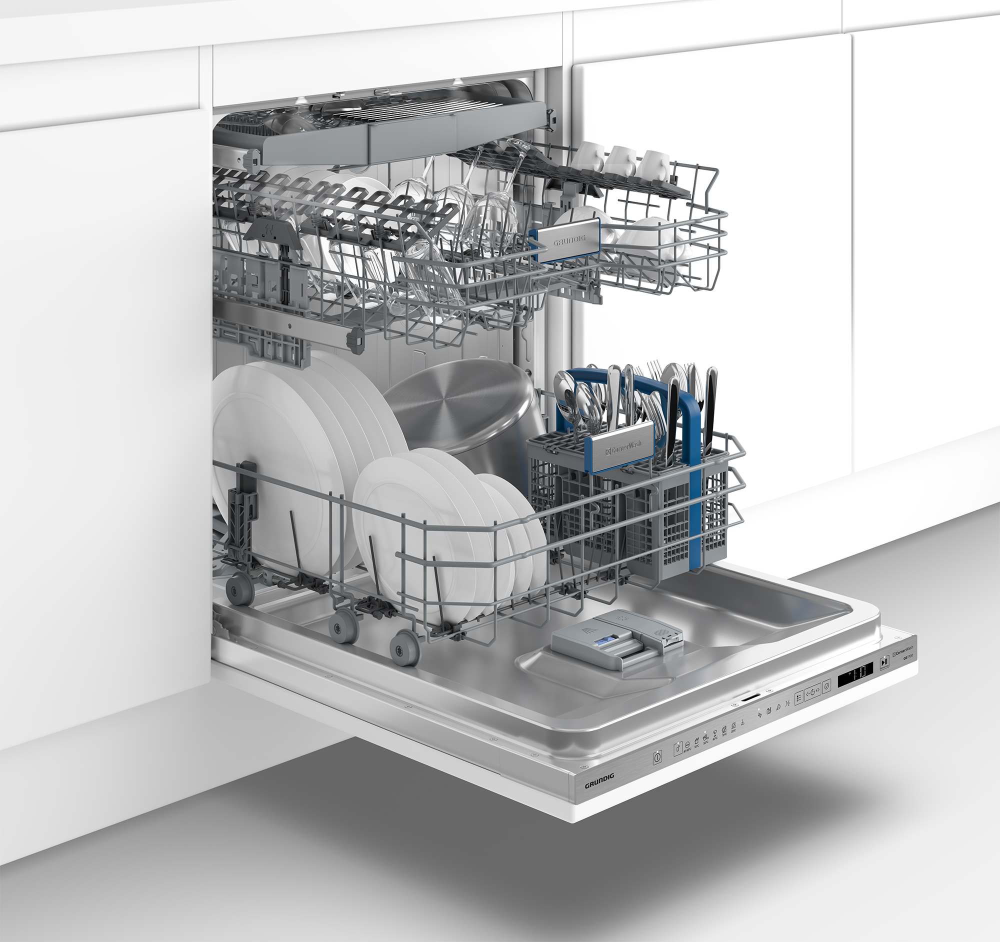 Der Grundig Geschirrspüler GNVP4510CW ist ein Einbaugerät mit Platz für bis zu 14 Maßgedecke.