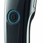 Der Schneidsatz ist aus hochwertigem, extra scharfem und wartungsfreiem Edelstahl. Die Schnittlänge lässt sich von 1 bis 41 Millimeter für Bart und Haar variieren. Ab einer Länge von 2 Millimetern unterstützt das Teleskopkammsystem mit zwei Kammaufsätzen die Arretierung der richtigen Haar- und Bartlänge, die mit der Schnittstufenanzeige stets im Blick behalten wird.