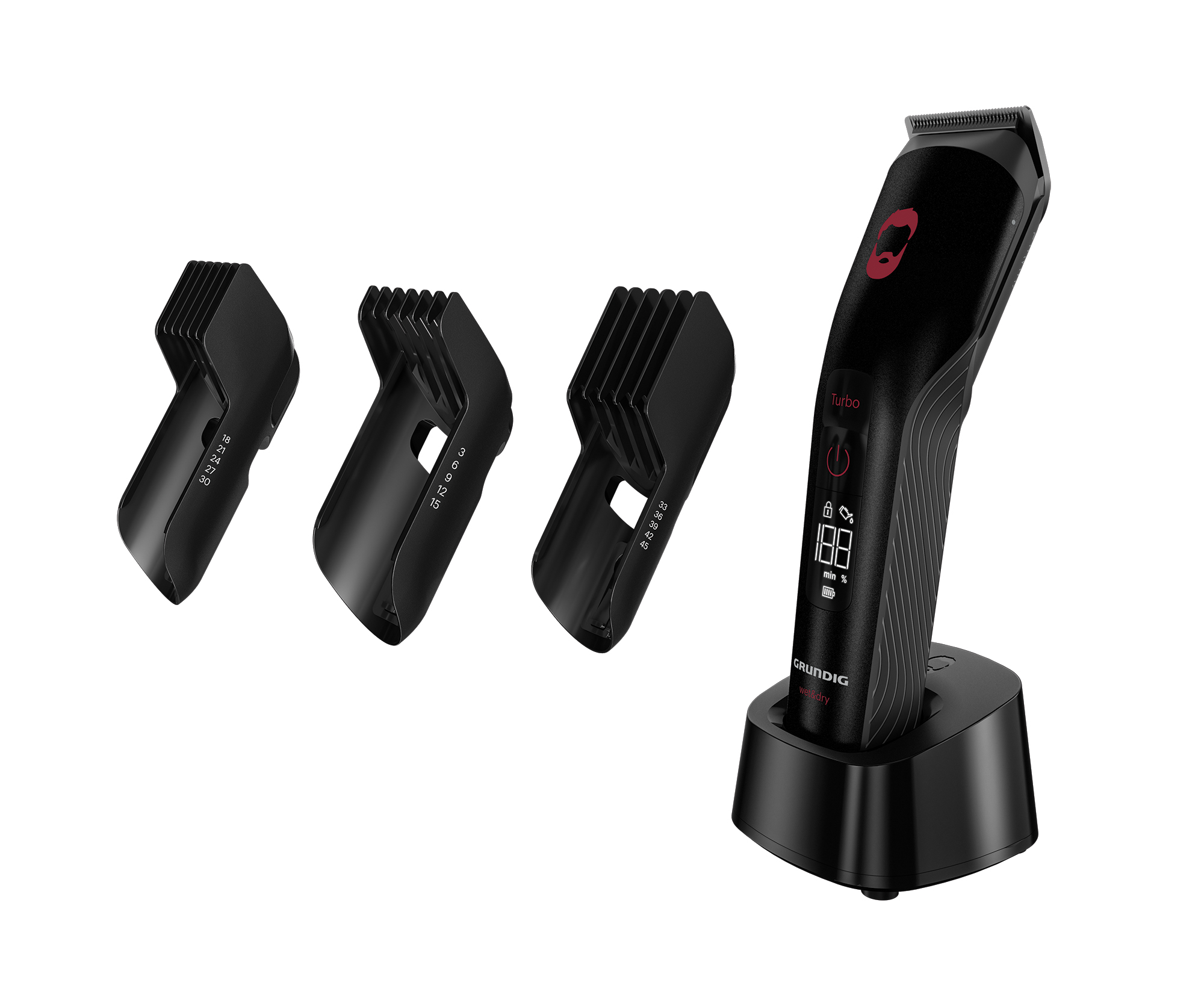 Ausgestattet mit drei Kämmen für unterschiedliche Schnittlängen (3 mm bis 45 mm), lassen sich unterschiedlichste Styles mit dem Haar- und Bartschneider kreieren. Das Design in Mattschwarz wird um rote Elemente ergänzt.