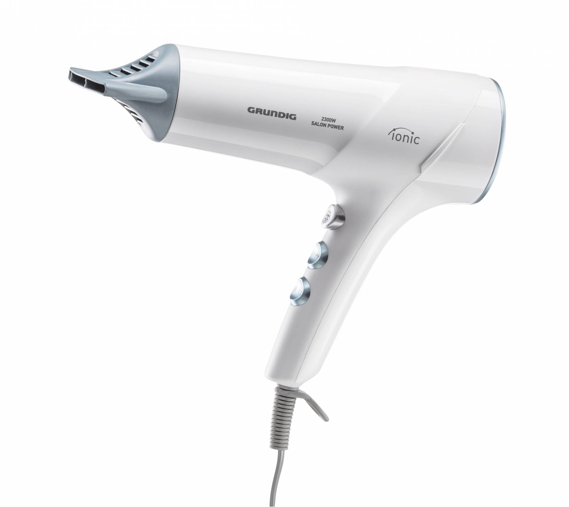 Der Grundig Haartrockner HD 7581 der dank seiner Ionic-Funktion das Haar beim Stylen nicht schädigt, sondern pflegt. Denn während des Föhnens werden Ionen erzeugt, die sich schützend um die Haare legen und sie bis tief in ihre innerste Struktur hydratisieren. So bleibt Vitalität und Sprungkraft erhalten. Das Ergebnis: gesundes, antistatisches und geschmeidig glänzendes Haar. Zusätzlich bewahrt das keramikbeschichtete Düsengitter die Haarfaser vor dem Austrocken.