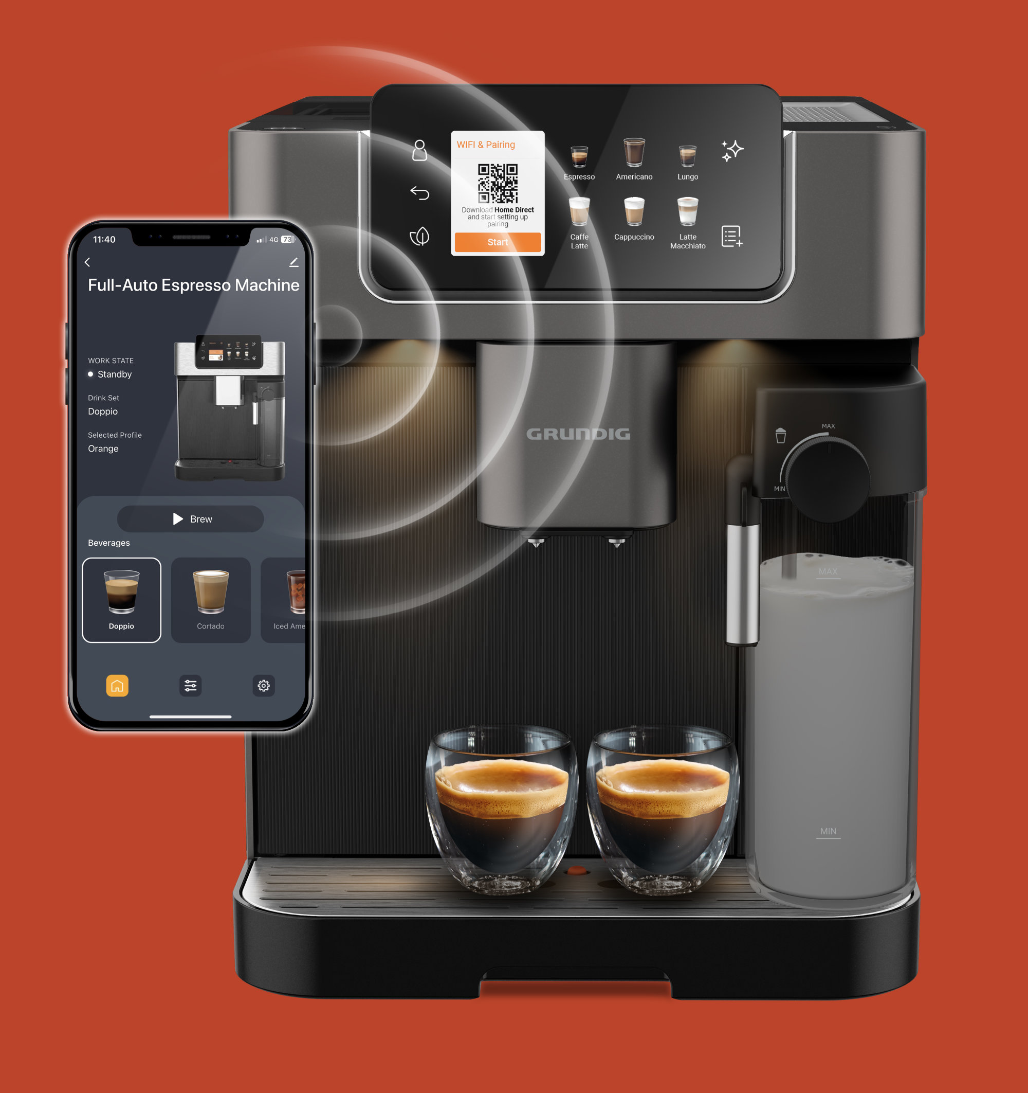 Der Grundig Kaffeevollautomat KVA 8230 ist die erste smarte Kaffeemaschine der Marke Grundig.