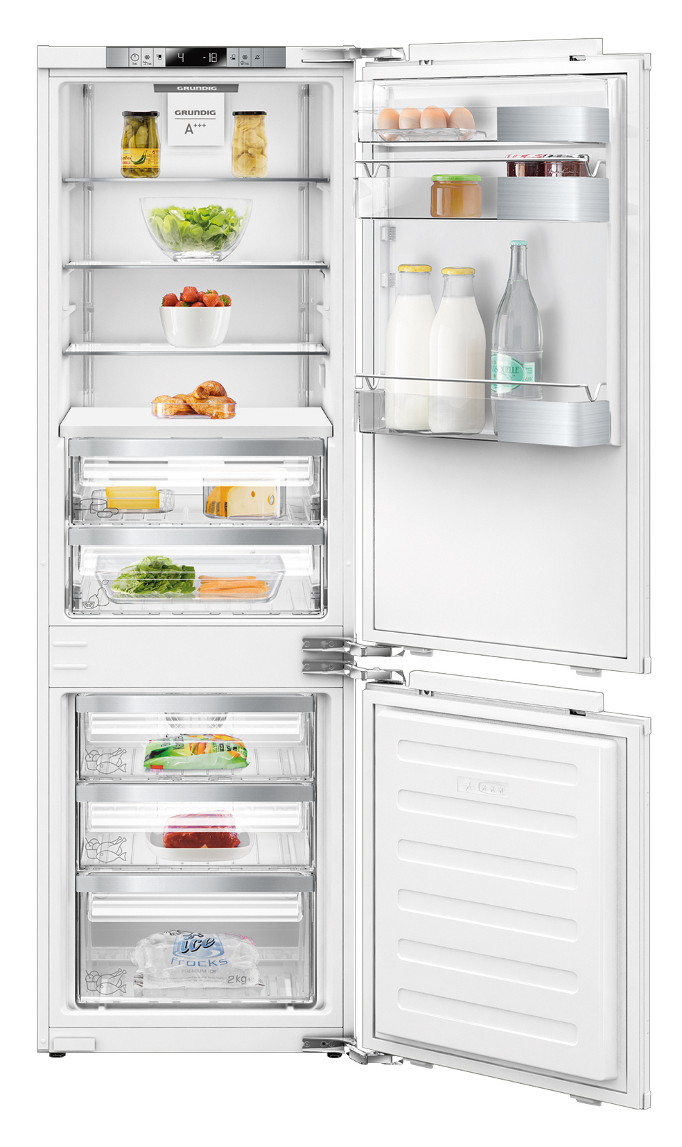 Die Grundig Kühl-/Gefrierkombination Edition 70 ist eine vollintegrierte Kombination mit der Energieeffizienzklasse A++ und Easy Door Installation-Festtürtechnik.