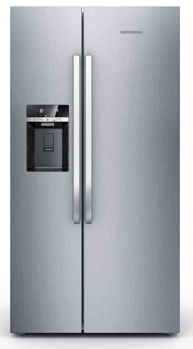 Die Grundig Kühl-/Gefrierkombination GSBS 15720 X ist ein Side by Side-Gerät mit Duo-Cooling No Frost Technologie in der Energieeffizienzklasse A++. Mit der VitaminCare Schublade lassen sich Obst und Gemüse länger lagern und der Vitamin C Gehalt bleibt erhalten. Zur Ausstattung gehören Urlaubsmodus, FreshGuard-Technologie mit Ionen und 0-3 °C Super Fresh Zone. Ein integrierter Wasser- und Eisspender sowie ein Barfach ergänzen die Ausstattung. Aufgrund des Glaswassertanks wird kein direkter Anschluss an die Wasserleitung mehr benötigt und das Gerät kann frei im Raum platziert werden