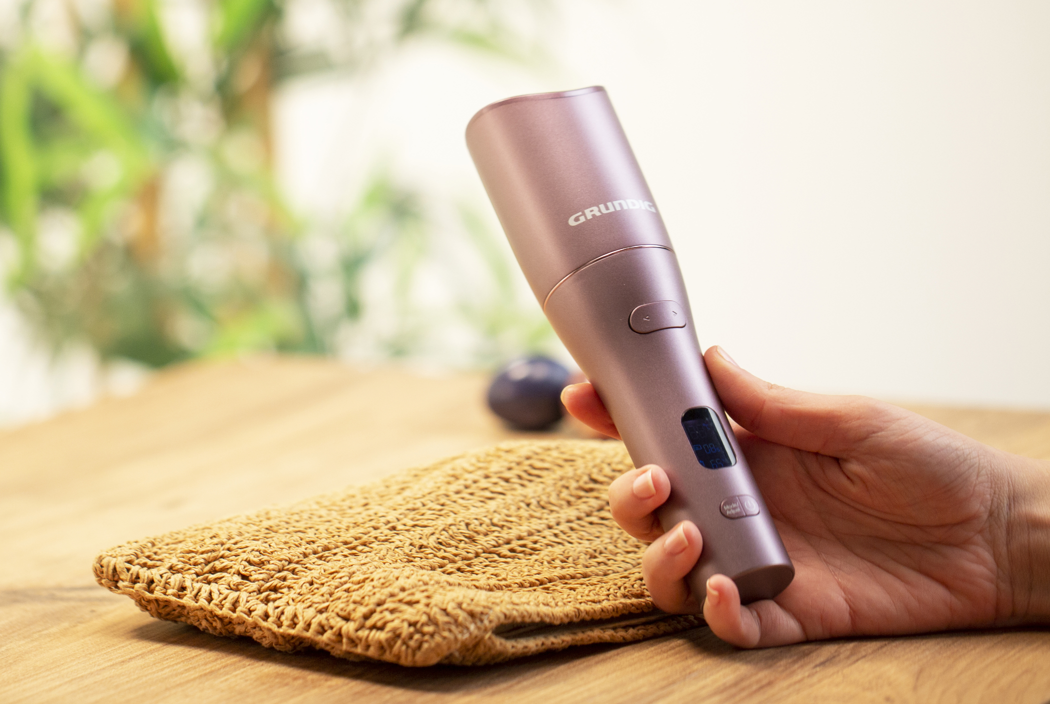 Der Grundig Lockenstab EasyCurl HS 6230 stylt das Haar automatisch auf Knopfdruck.