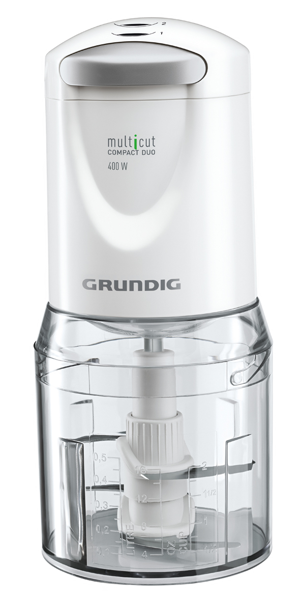 Der Grundig Multicut Compact Duo MM 5150 Zerkleinerer ist ein kleiner Küchenhelfer mit einem kraftvollen Motor von 400 Watt Leistung. Entgegen der in dieser Klasse sonst üblichen Ausstattung hat der MM 5150 vier robuste Edelstahlmesser, so der Hersteller. Die Messer sind optimal für den 0,5 Liter großen Arbeitsbehälter angeordnet und erreichen so gezielt und besser den gesamten Inhalt zur Zerkleinerung. Der Mixer hat die Farben Weiß und Proconsilber. Grundig gewährt drei Jahre Qualitätsgarantie.