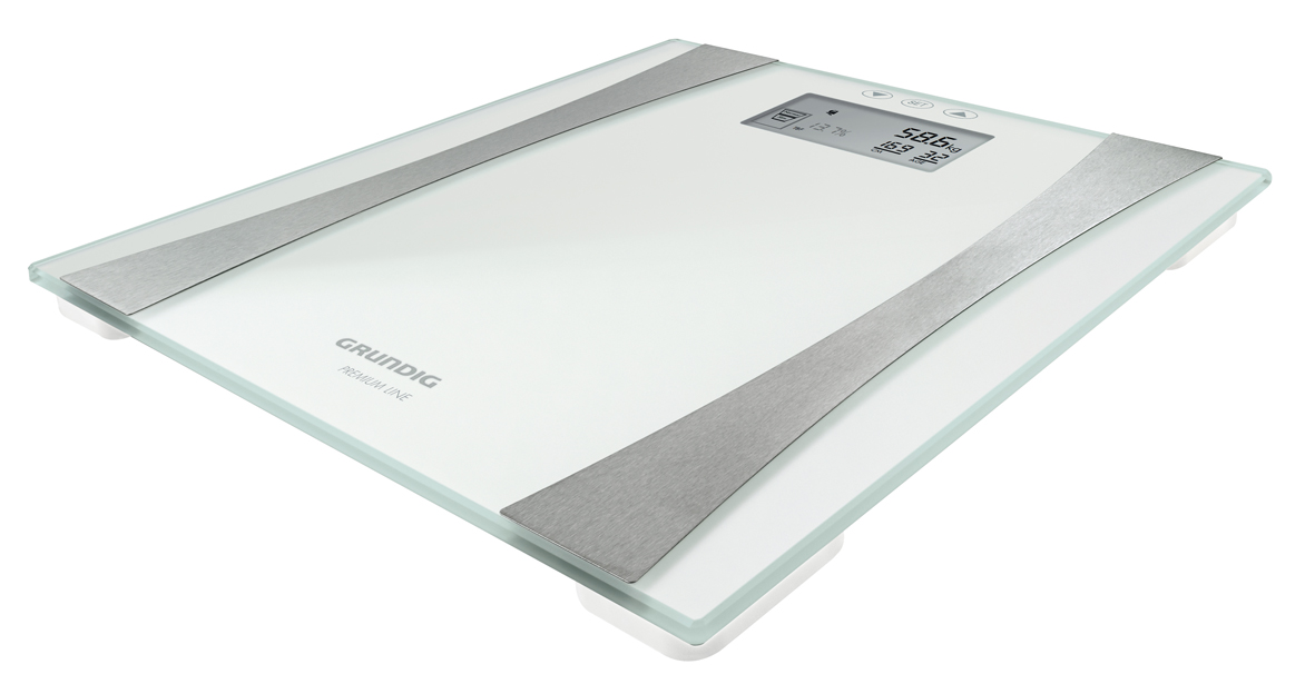 Die digitale Grundig PS 5110 Analysewaage eignet sich zum Messen von Körpergewicht, Body Mass Index (BMI), Körperfett, Anteil an Wasser im Körpergewebe, Muskelmasse und des Anteils an Knochengewicht im Verhältnis zum Körpergewicht. Die Wertermittlung des Körperwasser-, Körperfett- und Muskelanteils erfolgt durch einen Bio-Impedanz-Analyse. Mit Hilfe einer Vier-Punkt-Messung wird das Körpergewicht ermittelt und in 100 Gramm-Schritten angezeigt; das Körperfett in 0,1 Prozent-Schritten.