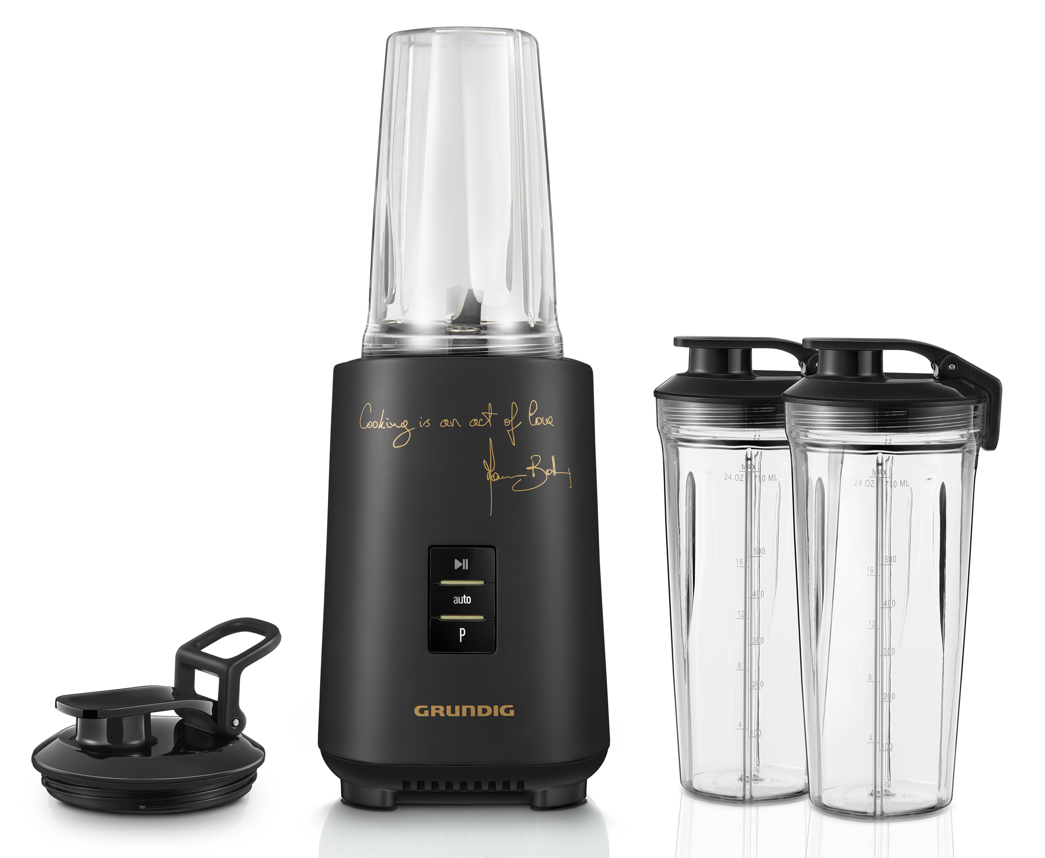 Die Massimo Bottura Küchenlinie umfasst einen Küchenmixer, einen Toaster, eine Kaffeemaschine, einen Standmixer und einen Stabmixer. Alle Produkte präsentieren sich in einem edlen Design und fallen durch das markante Mattschwarz und die goldene Unterschrift von Sternekoch Massimo Bottura auf. Neben der Unterschrift findet sich sein berühmtes Zitat „cooking is an act of love“ („Kochen ist eine Form von Liebe“) auf den Geräten wieder.