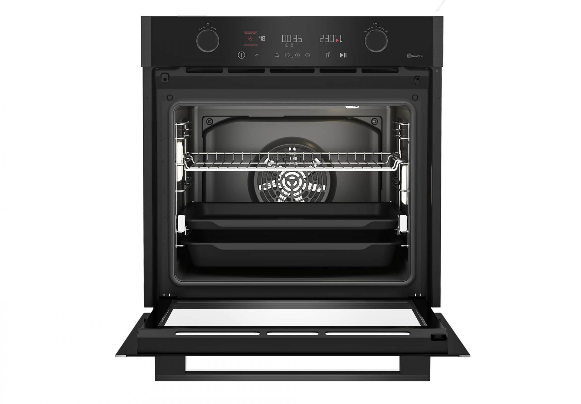 Aufgefallen unter den neuen Dark-Inox-Geräten ist der Multifunktionsofen GEBM19400DXPH mit 15 Funktionen, darunter neben Garfunktionen einschließlich Heißluft auch Komfortfunktionen wie Dampfreinigung, Pyrolyse und Eco-Pyrolyse.