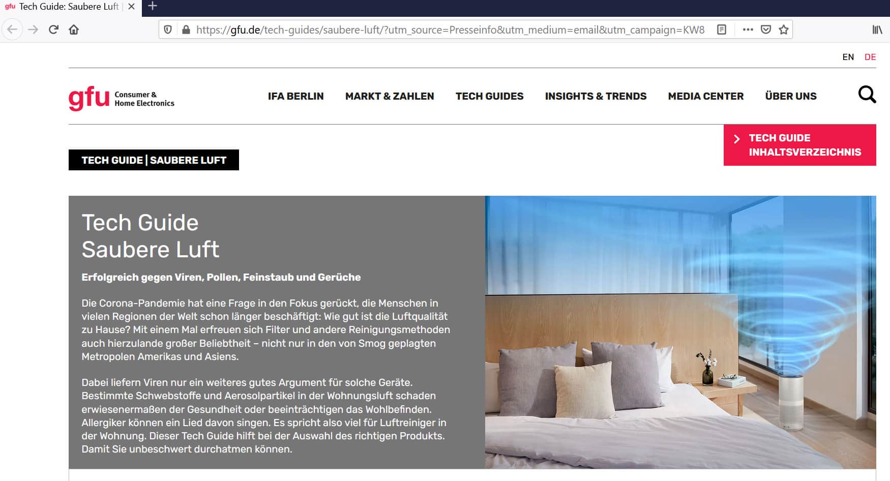 Auch die gfu Consumer & Home Electronics GmbH hat das Trend-Thema Air Treatment mit umfassenden Informationen aufgearbeitet.