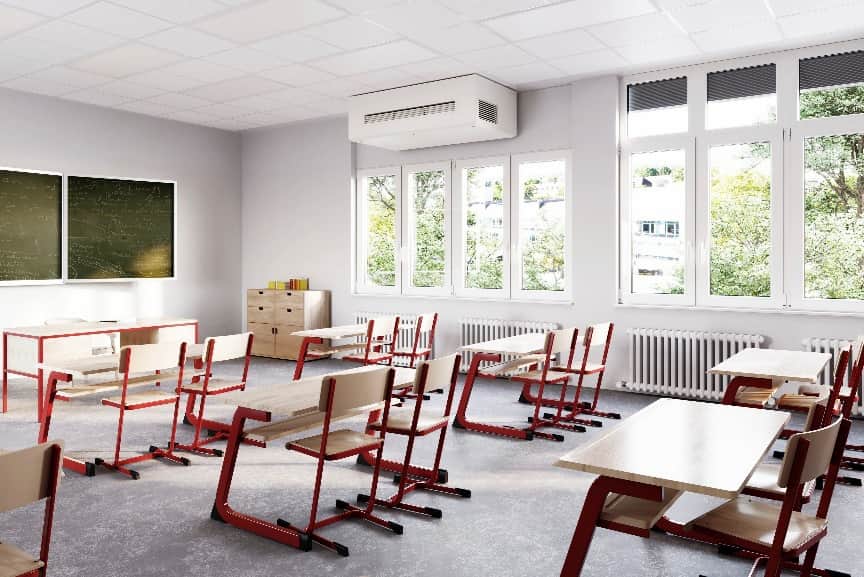 Luftreinigung ist für Stiebel Eltron nur eine Seite der Medaille, wenn es um gute Luft geht, gerade wenn es um größere Räumlichkeiten wie Klassenzimmer geht.