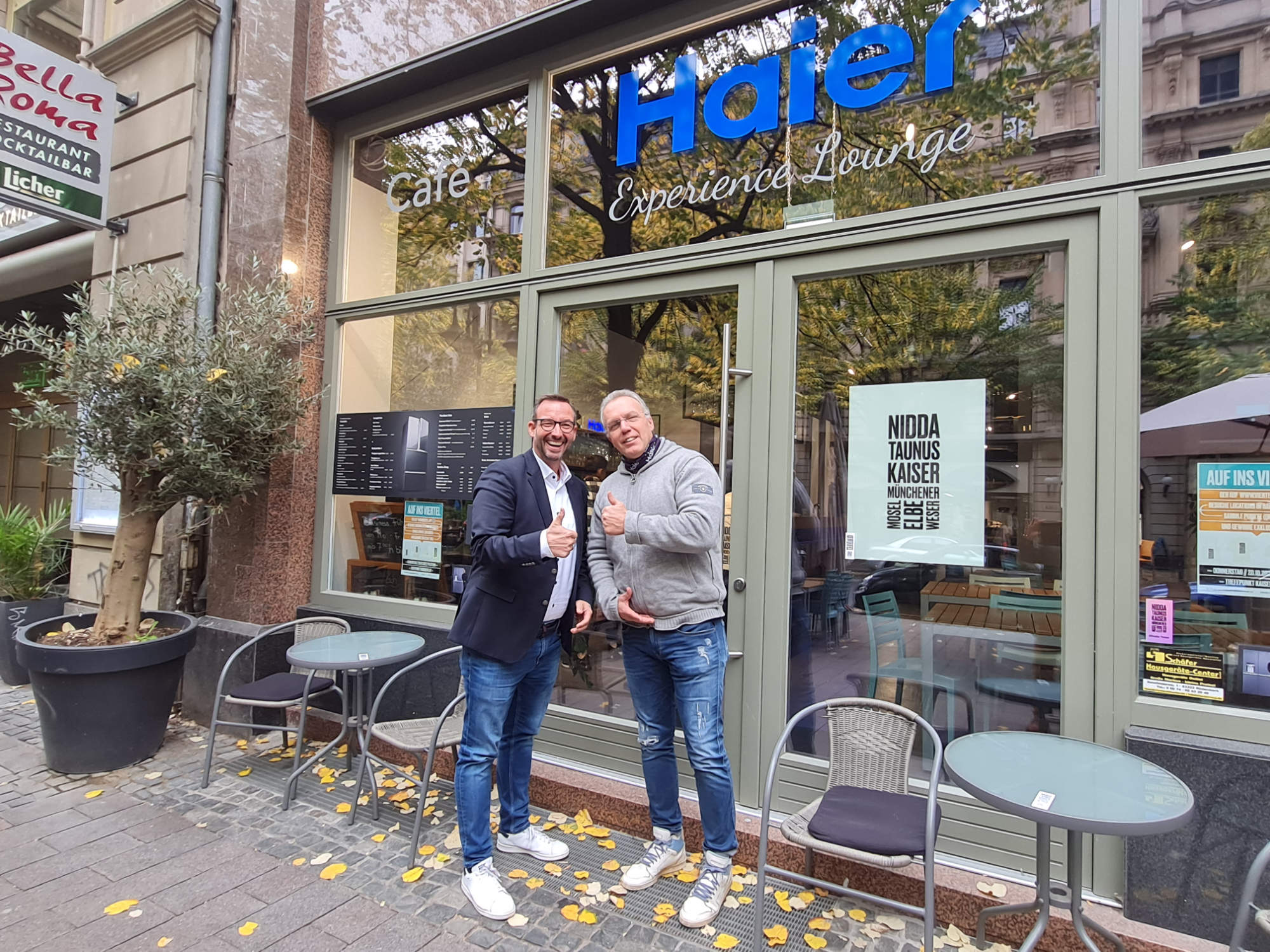 Dass es die „Haier Experience Lounge“ seit gut einem Jahr in Frankfurt gibt, hat vor allem mit dem Börsenplatz Frankfurt, an dem die Aktien von Haier gehandelt werden, zu tun – und der jahrzehntelangen Freundschaft zwischen Roger Schäfer und Thomas Wittling, CEO von Haier DACH. Beide kennen sich von ihren jeweiligen beruflichen Anfängen bei AEG (Wittling im Vertrieb, Schäfer im Kundendienst), später traf man sich dann bei LG und Gorenje wieder.
