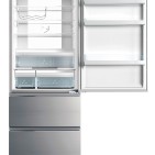 Die Haier Kühl-/Gefrierkombination 4D Serie 70 hat vier Türen und erfüllt die Energieeffizienzklasse A++. Ein digitaler Inverter-Kompressor sorgt für optimale Energieleistung und hält Temperaturschwankungen innerhalb des Kühl- oder Gefrierabteils in Grenzen. Zudem sorgt er dafür, dass der Kühlschrank stets ruhig und gleichmäßig läuft. Die Lärmemission beträgt 38 dBA.