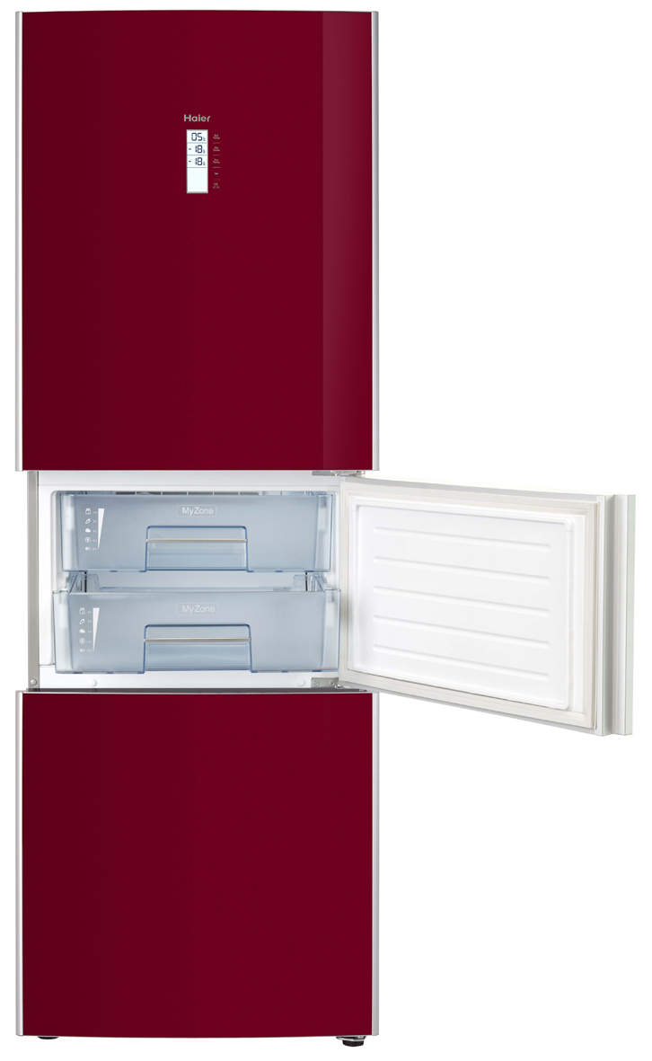 Die Haier MyZone Kühl-Gefrierkombination ist mit pflegeleichten und eleganten Hochglanz-Fronten aus Sicherheitsglas in Rot, Schwarz oder Weiß oder in Edelstahl-Front erhältlich. Mit einer Breite von 60 Zentimetern (63 Zentimeter im Türbereich) lässt sie sich in jede moderne Küche integrieren.