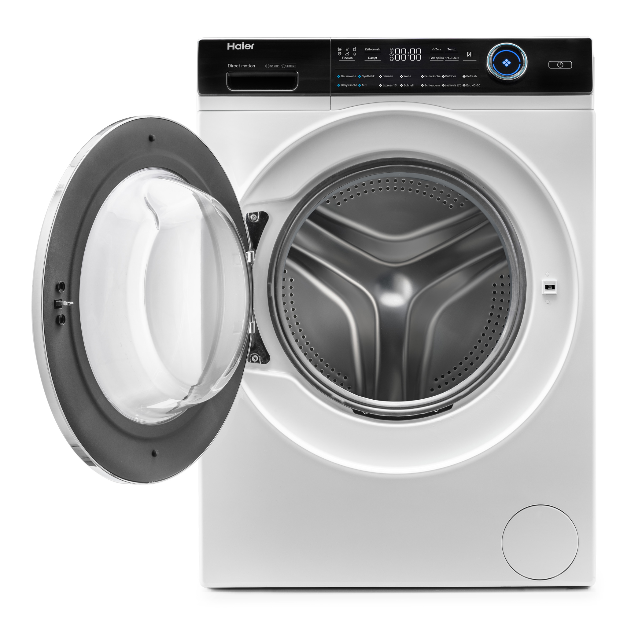 Der Motor ist direkt an der Trommel befestigt und kommt ohne Keilriemen aus. Die Waschmaschine läuft dadurch besonders ruhig (maximal 69 dB beim Schleudern). Außerdem gibt Haier eine lebenslange Garantie auf diesen Antrieb.