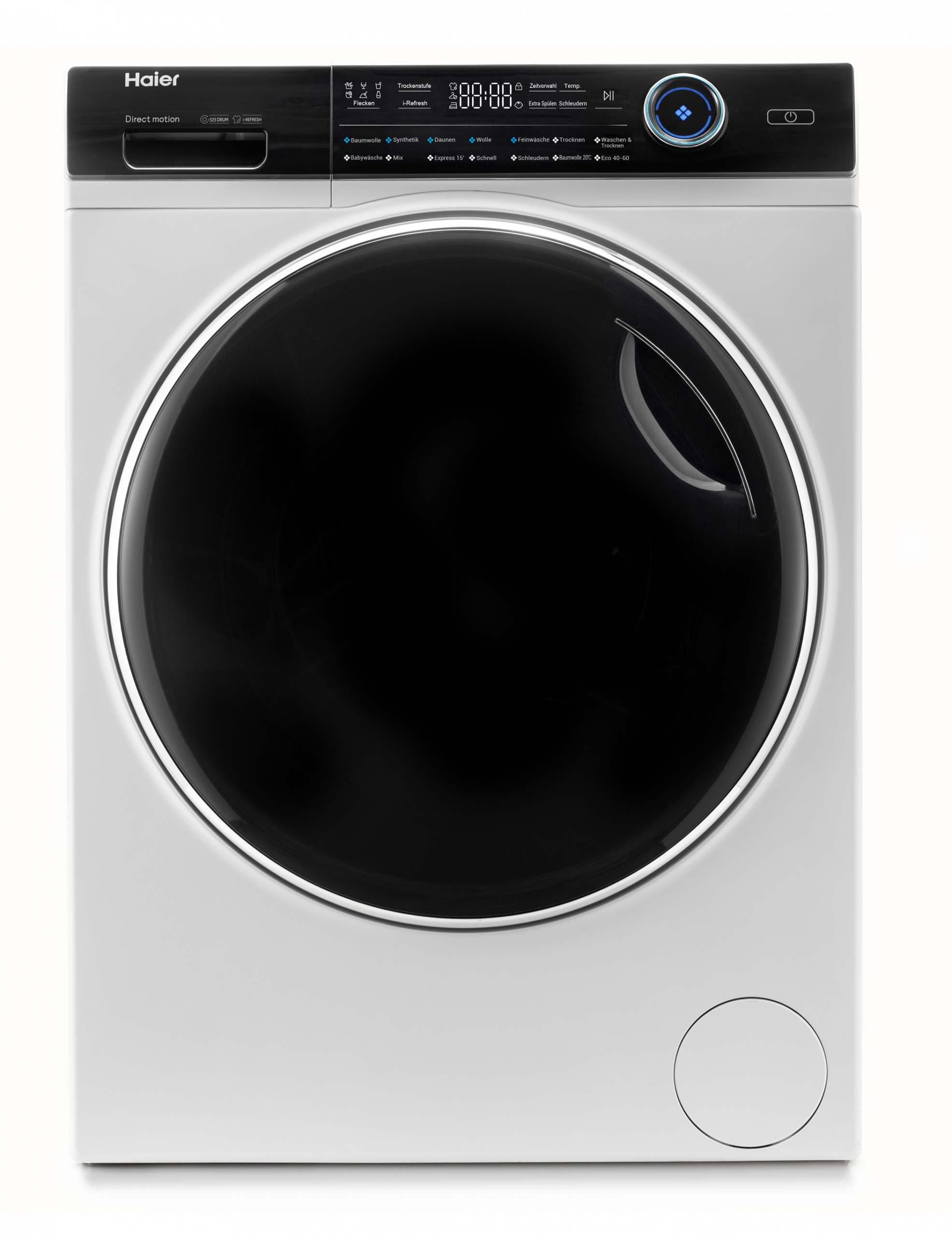 Weiterhin bietet der Waschtrockner der Energieklasse A einen leisen Direct Motion Motor. Im Gegensatz zu Standardmodellen ist er direkt an der Trommel befestigt und kommt ohne Keilriemen aus. Die Maschine läuft dadurch besonders ruhig. Außerdem arbeitet der Motor extrem zuverlässig – weshalb Haier eine lebenslange Garantie auf diesen Antrieb gewährt.