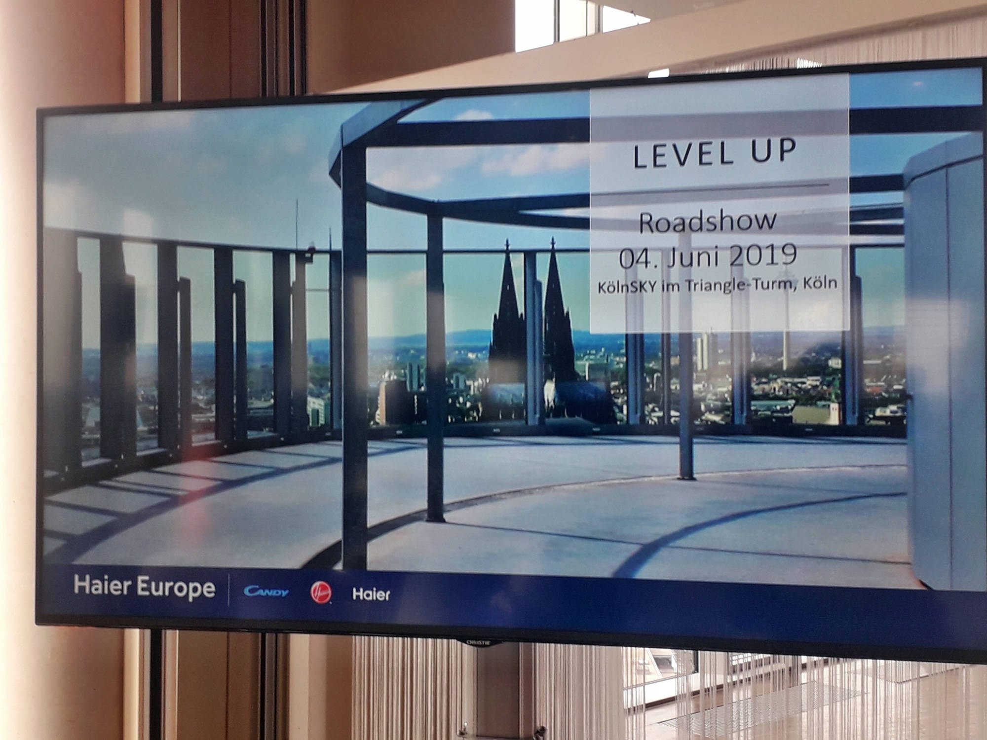 infoboard.de war vorgestern in Köln vor Ort. Tenor: Haier will nicht nur hoch hinaus, Haier will nach ganz oben. Und so war auch die Location der „Level up“-Roadshow in der Domstadt mit Bedacht und Weitsicht gewählt: höher als die Veranstaltungsfläche „KölnSky“ in der 27. Etage im „Triangle Turm“ geht es in Köln kaum. „Wir suchen Händler mit Weitblick“, begrüßte Wittling das „Who is who“ des Handels aus NRW. Auf der Gästeliste und mit dabei u.a. Vertreter von AO Deutschland, Metro, Brömmelhaupt und Holzleitner, EK/servicegroup (Martin Wolf) und Euronics (Aufsichtsratsvorsitzender Dirk Wittmer).