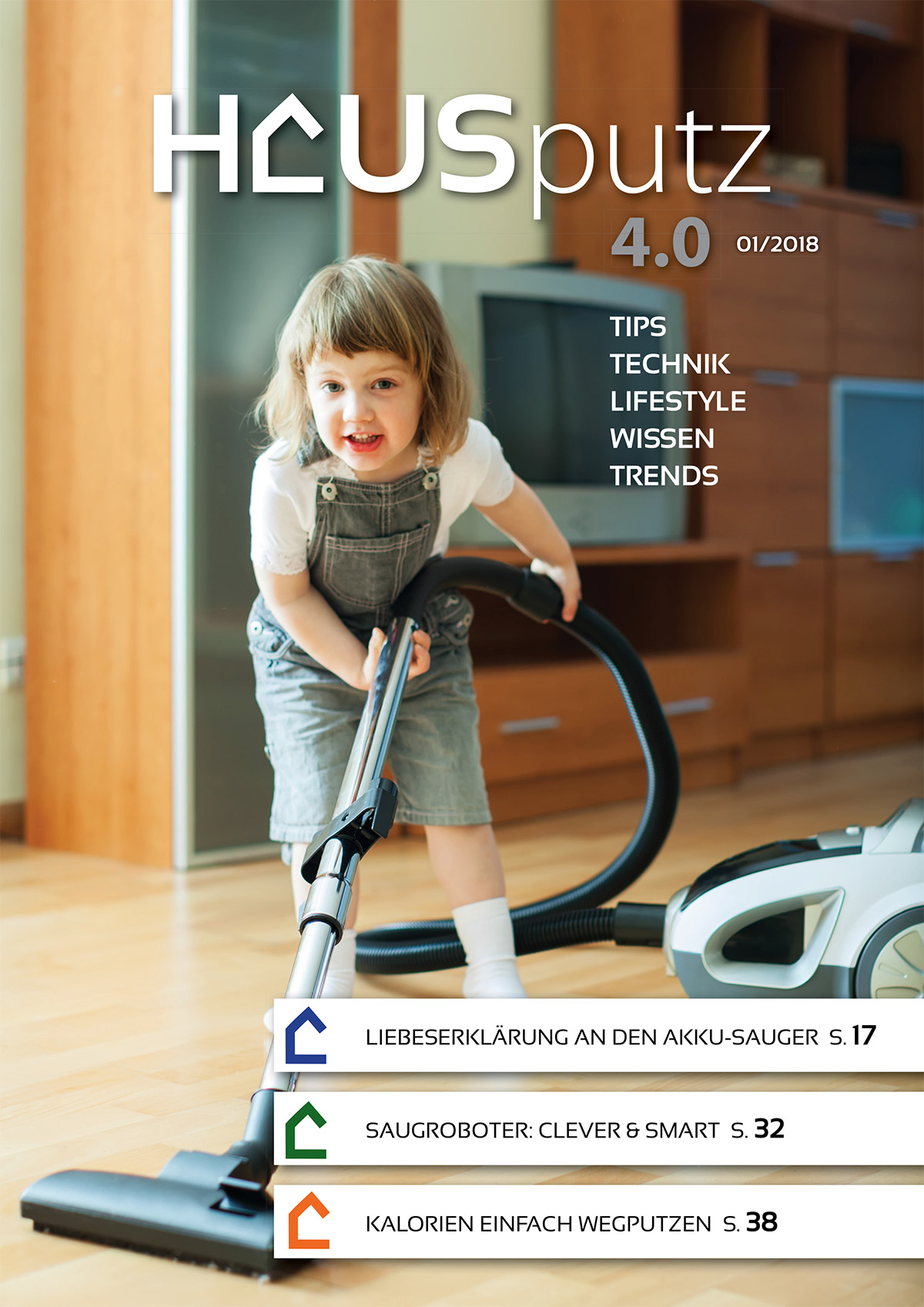 Das neue eMagazin HAUSPUTZ 4.0 hilft bei der Auswahl des passenden Staubsauger-Modells, macht sich über die Handhabung im Alltag, das passende Zubehör und die Lautstärke Gedanken, gibt Tipps von professionellen Putz-Experten für die Reinigung, singt Loblieder an den Akkusauger und den klassischen Schlittensauger, wirft einen Blick auf die Reinigung von Fenster und Terrasse – und vergisst dabei auch ein Augenzwinkern nicht: Oder hätten Sie gedacht, dass gemeinsames Putzen die Beziehung stabilisieren kann? Noch besser, dass der Hausputz fast so viel zu Ihrer Fitness beiträgt wie Radfahren? Unser Tipp: Putzen Sie doch Ihre überflüssigen Kalorien einfach weg! Wie das geht, steht ab sofort im eMagazin HAUSPUTZ 4.0.