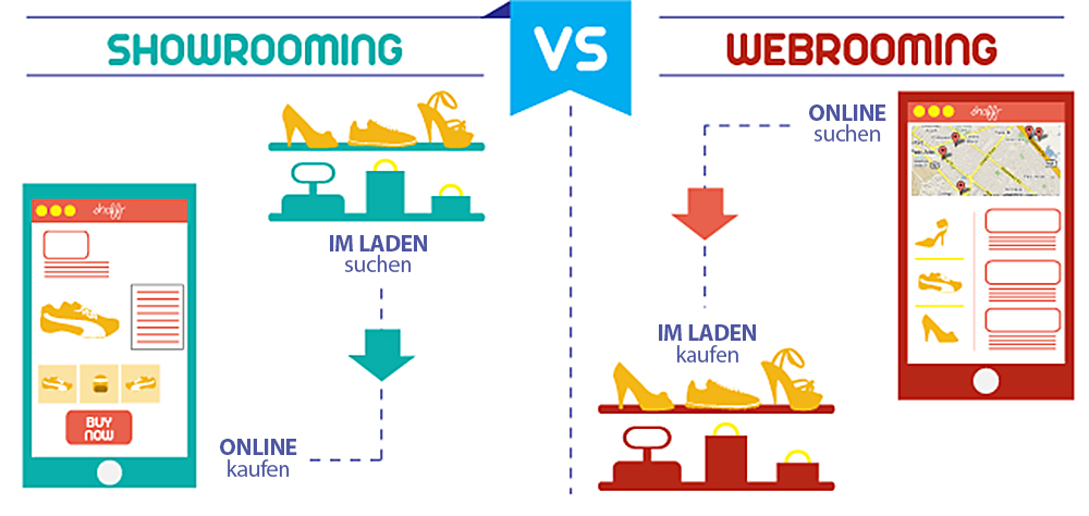 Doch was ist heutzutage schlimmer? Showrooming oder Webrooming? Beim Showrooming haben Sie den Kunden in der Regel noch vor der Lunte, können aktiv in die Kaufentscheidung eingreifen. Betreiben ihre Kunden Webrooming sind sie physisch meilenweit von Ihnen weg, quasi im Nirwana.