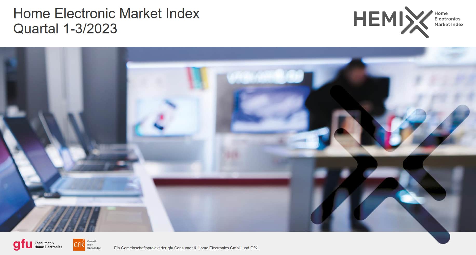 Der Markt für Home Electronics-Produkte (HE), dargestellt im HEMIX, Home Electronics Market Index, verzeichnete in den ersten drei Quartalen 2023 verglichen mit dem Vorjahres-Zeitraum einen Rückgang um 6,1%. In den Monaten Januar bis September 2023 wurde ein Gesamt-Umsatzvolumen von knapp 31,8 Mrd. EUR erzielt.