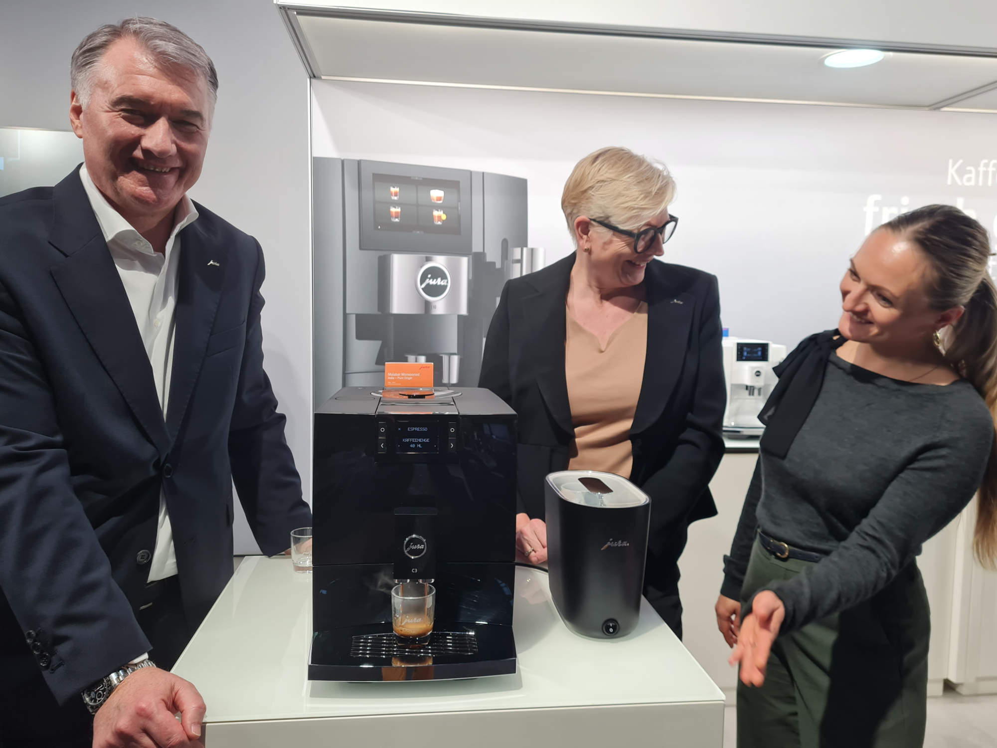 Premiere bei Jura für den Pure-Coffee-Vollautomaten C3. V.l.n.r.: Horst Nikolaus, Wiebke Reineke und Mandy Gieseler. Fotos: M. Machan