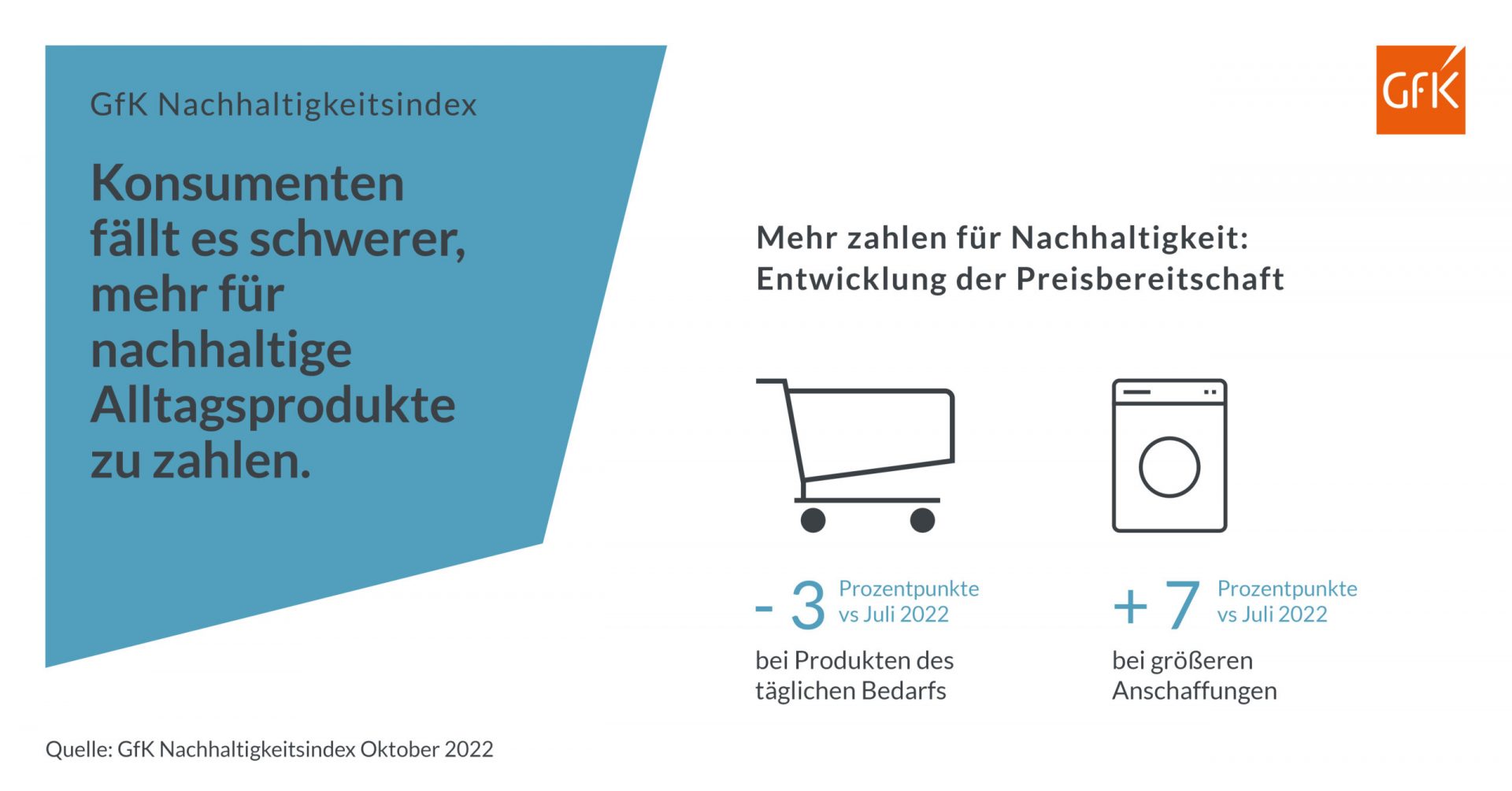 Nachhaltige Produkte sind häufig teurer als konventionelle Alternativen. Bei größeren Anschaffungen ist der Anteil derjenigen Konsumenten, die einen Kauf planen und bereit sind für ein nachhaltiges Produkt einen höheren Preis zu zahlen, mit 75% im Vergleich zu 68% im Juli deutlich gestiegen. „Wegen der explodierenden Energiepreise suchen die Konsumenten derzeit gezielt nach energiesparenden Produkten wie Haushaltsgeräten. Für diese nachhaltigeren Produkte nehmen sie einen höheren Anschaffungspreis in Kauf“, erklärt Petra Süptitz das Wachstum.