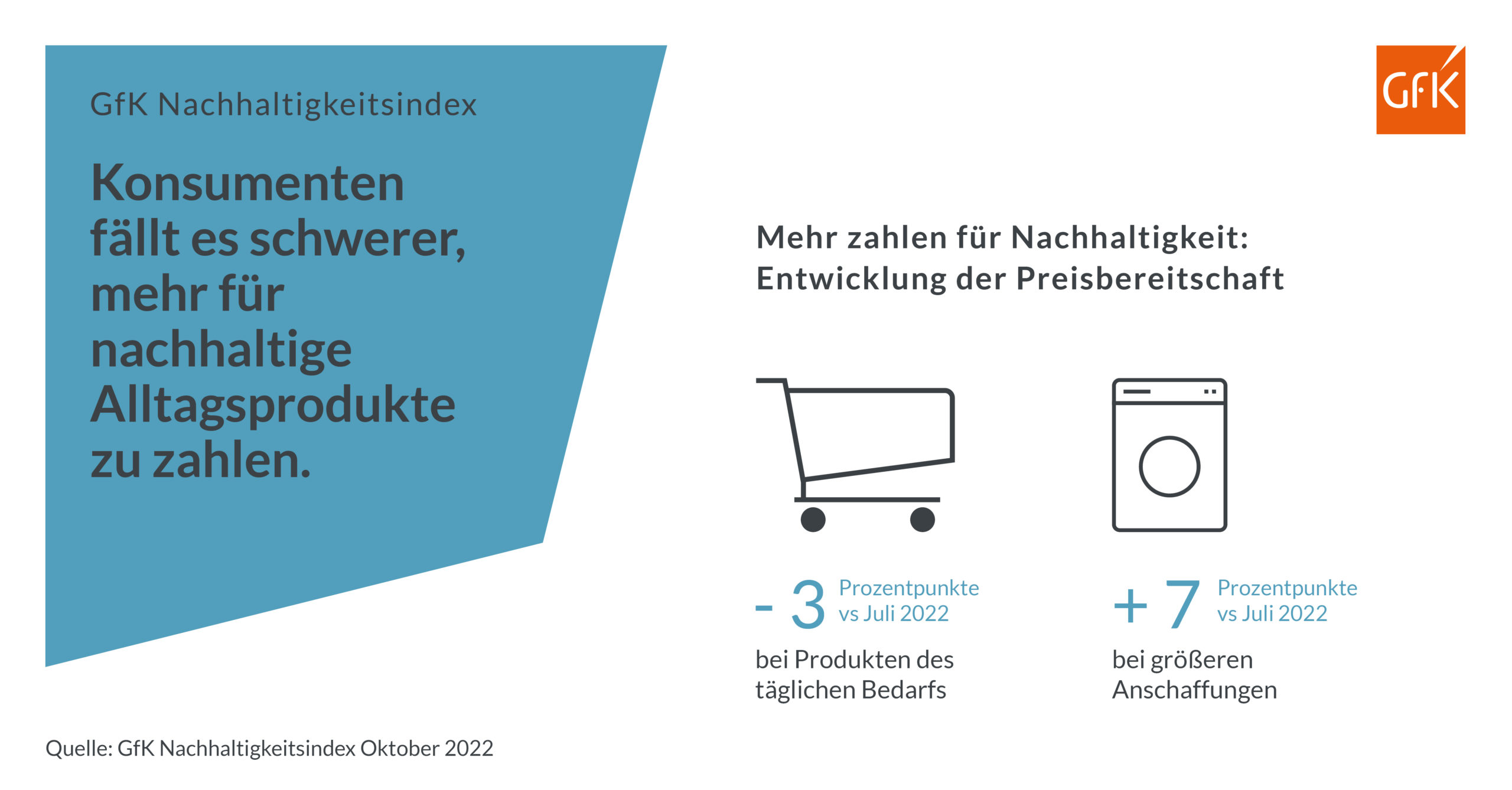 Nachhaltige Produkte sind häufig teurer als konventionelle Alternativen. Bei größeren Anschaffungen ist der Anteil derjenigen Konsumenten, die einen Kauf planen und bereit sind für ein nachhaltiges Produkt einen höheren Preis zu zahlen, mit 75% im Vergleich zu 68% im Juli deutlich gestiegen. „Wegen der explodierenden Energiepreise suchen die Konsumenten derzeit gezielt nach energiesparenden Produkten wie Haushaltsgeräten. Für diese nachhaltigeren Produkte nehmen sie einen höheren Anschaffungspreis in Kauf“, erklärt Petra Süptitz das Wachstum.