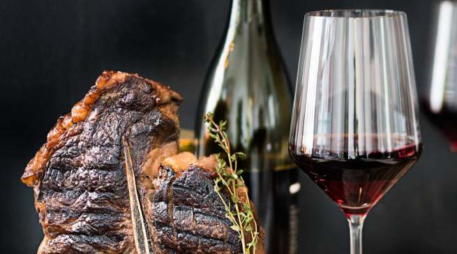 Rindfleisch: Wer etwas Besonderes für seine Gäste auflegen möchte, greift zum Dry Aged Beef. Das trocken abgehangene Rindfleisch reift bei einer kontinuierlichen Luftfeuchtigkeit von 60% je nach Stück zwischen 7 und 28 Tagen. Kenner salzen das Steak etwa 15 Minuten vor dem Grillen, um mehr Röstaromen zu erhalten. Dann grillen sie es von jeder Seite eine Minute lang an und garen es bei indirekter Hitze bis zur gewünschten Kerntemperatur. Erst zum Schluss wird gepfeffert – und mehr braucht so ein edles Stück eigentlich auch nicht, außer einem qualitativ ebenbürtigen Rotwein, etwa vom kräftigen Lemberger. Der sollte aus dem Barrique stammen und darf ruhig etwas gereifter sein, weil dann die Gerbstoffe samtiger werden.