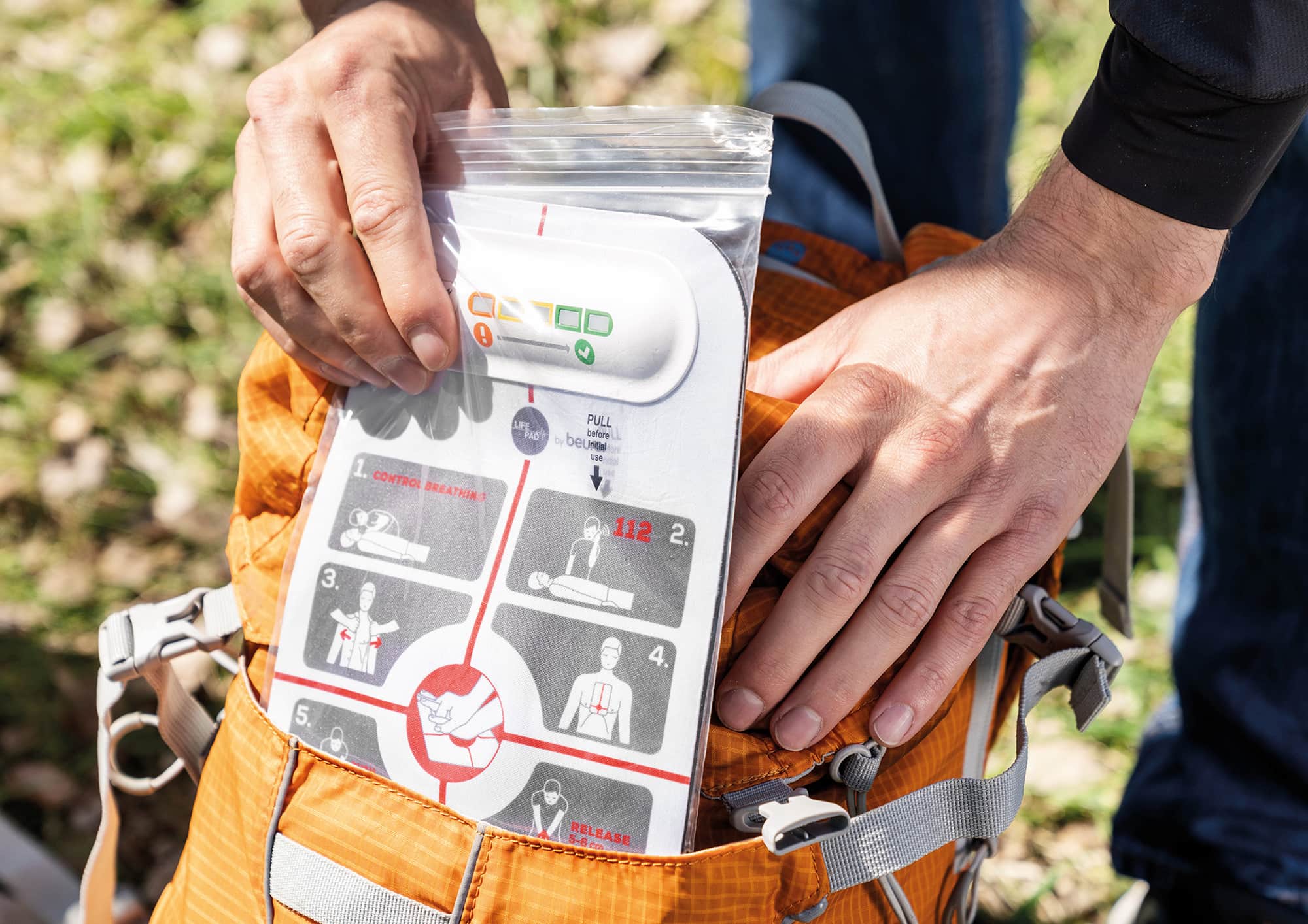 Das LifePad ist einfach anzuwenden und benötigt keine Vorkenntnisse. Alle Schritte, die im Notfall zu tun sind, werden direkt auf dem Produkt verständlich abgebildet. Zum Starten muss lediglich der Batteriestreifen gezogen werden. Sofort ertönt der Signalton, der den Rhythmus der Kompression vorgibt. Die roten Markierungen zeigen die Platzierung auf dem Brustkorb selbsterklärend an. Die erhöhte Auflagefläche hilft bei der korrekten Positionierung der Hände. Das LifePad besteht aus flexiblem Material und passt sich der Körperform an. Die Anwendung ist an und von Personen ab 12 Jahren möglich.