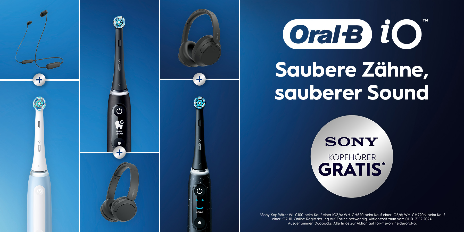 Mit der Zugabe-Aktion können Technikfans eine Premium-Zahnbürste erwerben und sich – je nach Modell – ausgewählte Kopfhörer von Sony als Geschenk sichern. Die iO Serie 3 und 4 gibt es mit den Sony In-Ear-Kopfhörern WI-C100. Die iO Serie 5 und 6 lockt mit den Sony Bluetooth-Kopfhörern WH-CH520. Die iO Serie 7 bis 10 bietet die Sony Noise Cancelling Bluetooth-Kopfhörer WI-CH720. Attraktive Werbematerialen wie Einleger, Poster und Wobbler erhöhen die Aufmerksamkeit am PoS. Für die Online-Registrierung und das Hochladen des Kaufbelegs haben die Verbraucher bis zum 14. Januar 2025 Zeit.