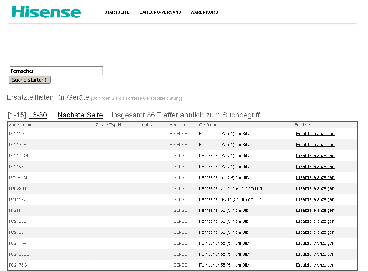 Kunden können hier einfach ein Suchwort oder die Modell-Nummer des Gerätes eingeben und schon werden alle vorrätigen Ersatzteile angezeigt. Das gesuchte Ersatzteil kann anschließend mit wenigen Klicks bestellt werden und wird direkt zum Kunden geliefert. Zu Beginn werden nur Ersatzteile aus dem Bereich Unterhaltungselektronik angeboten, später sollen auch Teile für Weiße Ware und Smartphones folgen. Hisense plant, seinen Kunden bis Ende 2016 ein umfassendes Ersatzteilangebot bieten zu können.