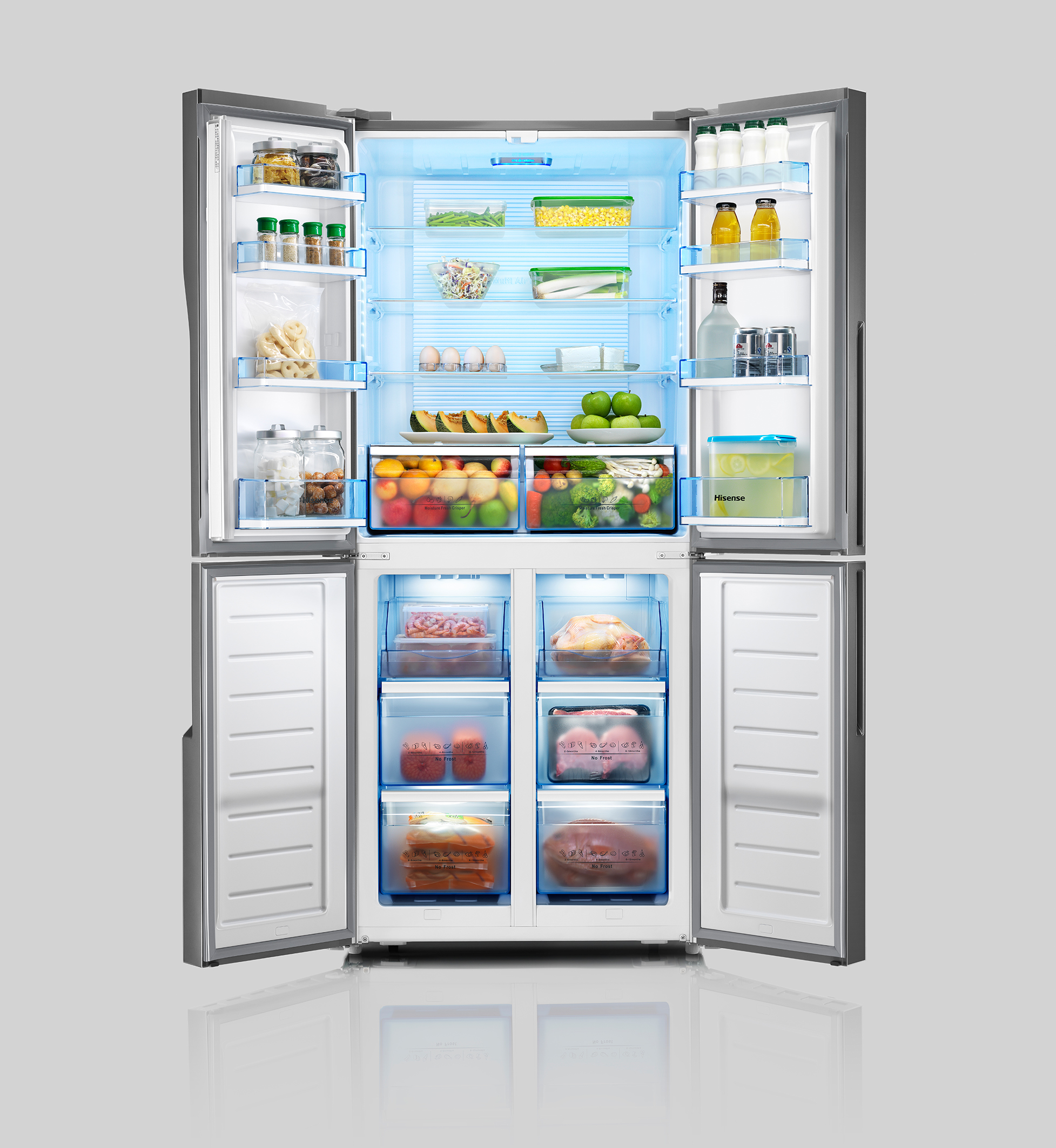Die Hisense Kühl/Gefrierkombination MKGNF-440 mit den „French Doors“ bieten mit vier Türen viel Platz für eine reichliche Auswahl an Fleisch, Obst, Gemüse: Für viele Lebensmittel unterscheiden sich die optimalen Kühlbedingungen zum Teil deutlich. Um diesen Unterschieden gerecht zu werden, verfügen die Kühlgeräte der MKGNF-440-Serie über drei separate Temperaturbereiche. In diesen Bereichen können Temperatur und Luftfeuchtigkeit manuell eingestellt werden. Im Kühlfach hat der Anwender die Möglichkeit Temperaturen zwischen 2° C und 8° C zu wählen, im Gefrierfach zwischen -15° C und -25° C. Beim dritten Temperaturbereich handelt es sich um das besonders flexible My-Fresh-Choice-Fach: Ein eigener Bereich mit separatem LuftstromSystem und elektronischer Temperatursteuerung. Hier können Anwender ganz individuell zwischen -5° C und -18° C wählen.